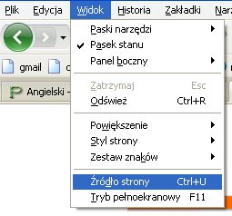2. Na pasku zadań wybierasz "Widok" -> "Źródło strony"