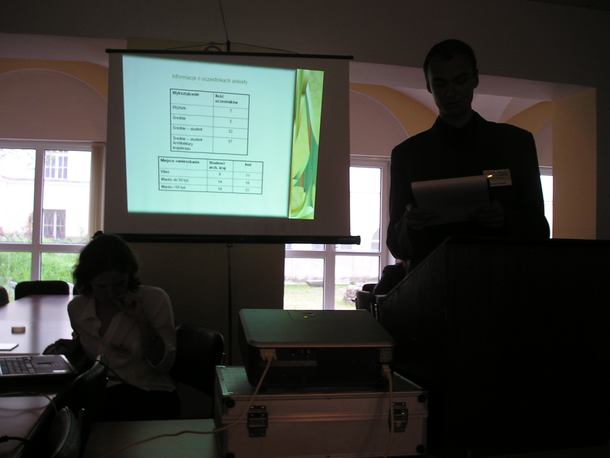 Postery: "Rekompozycja dziedzińca akademickiego w Kortowie" (Biernat M., Kulpińska M.) oraz "Zagospodarowanie terenu wokół domu parafialnego przy kościele pod wezwaniem św. Franciszka z Asyżu w Olsztynie" (Cybowska A., JAkubowska M.).