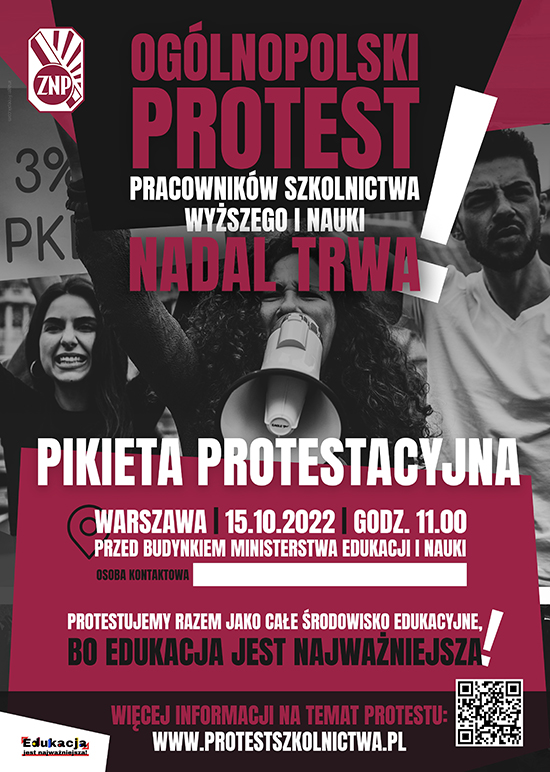 Rada Szkolnictwa Wyższego i Nauki Związku Nauczycielstwa Polskiego, w której zrzeszone są organizacje związkowe działające w uczelniach wyższych i placówkach badawczych, razem z całym Związkiem Nauczycielstwa Polskiego, zrzeszającym pracowników zatrudnionych w placówkach oświatowych, podjęła wspólny protest dotyczący sytuacji pracowników tych instytucji oraz sytuacji samych instytucji edukacyjnych, bo EDUKACJA JEST JEDNA I NAJWAŻNIEJSZA.