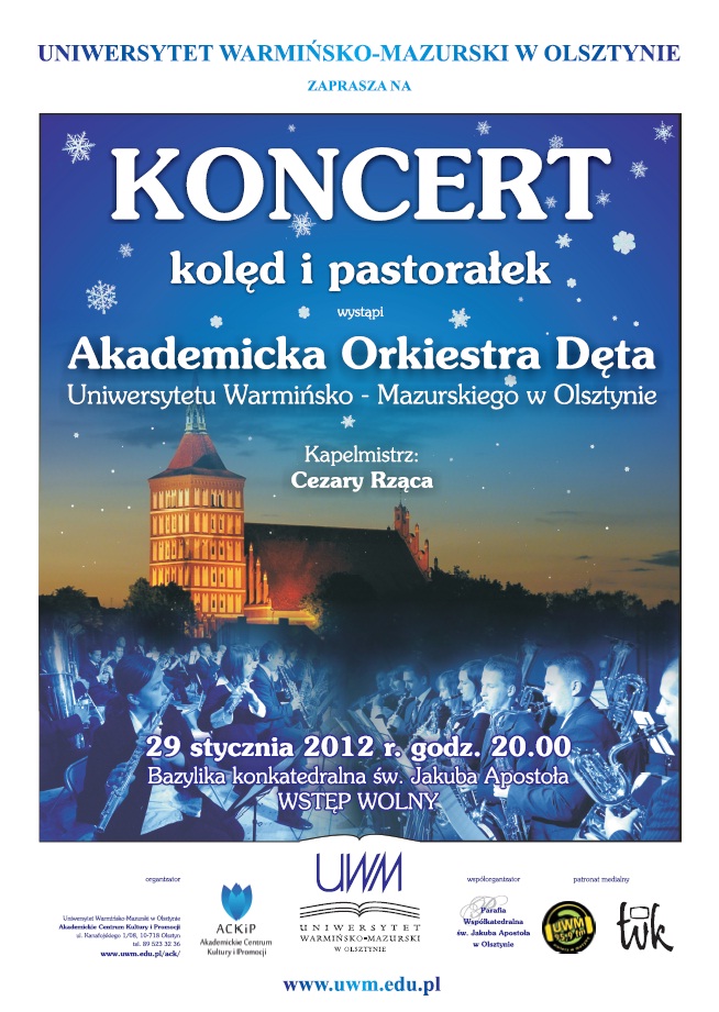Grudzień Koncert kolęd i pastorałek w wykonaniu Akademickiej Orkiestry Dętej
