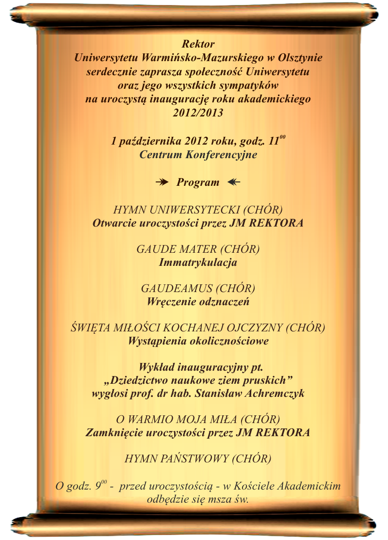 Grudzień Uroczysta Inauguracja roku akademickiego 2012/2013