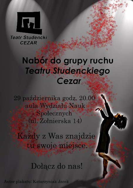 Grudzień Nabór do grupy ruchu Teatru Studenckiego Cezar