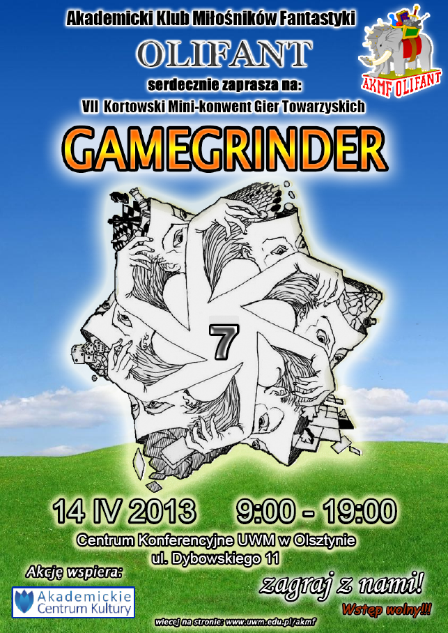 Zapraszamy do udziału w VII Kortowskim Mini-konwencie Gier Towarzyskich „Gamegrinder”