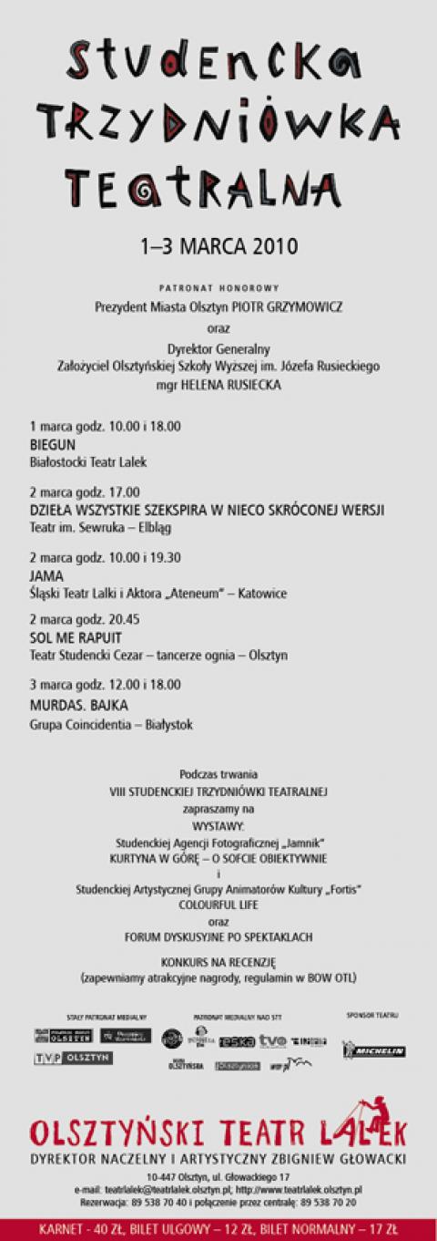 Podczas trwania VIII Studenckiej Trzydniówki Teatralnej zapraszamy na: