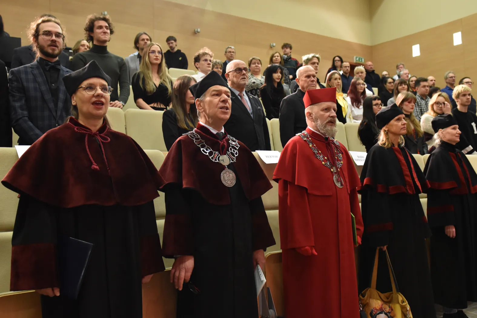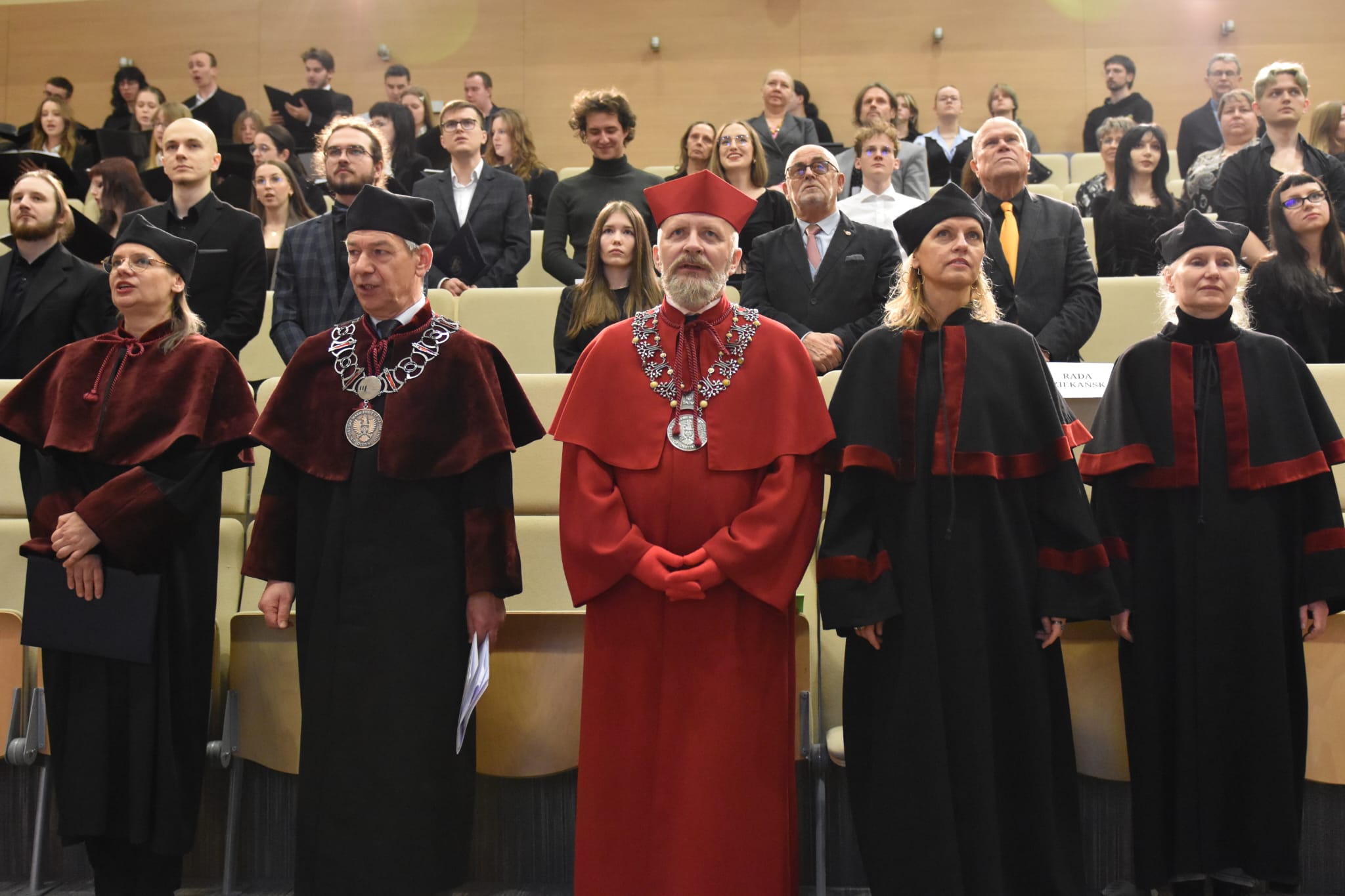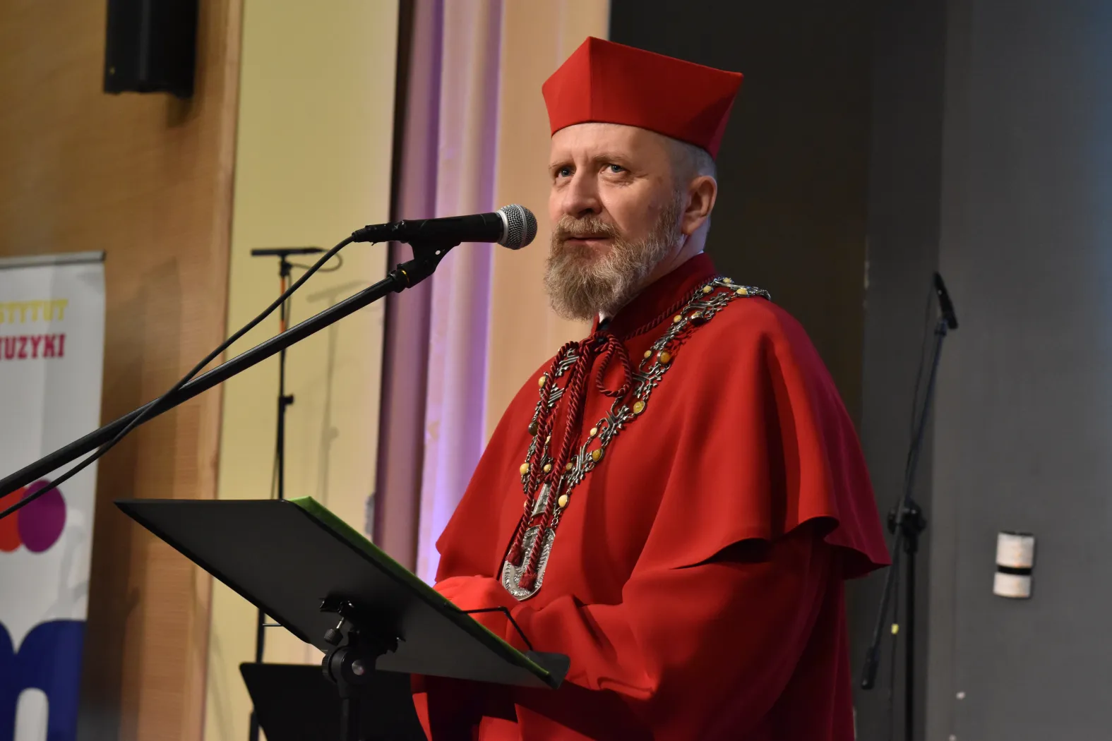 – Drodzy absolwenci, ukończyliście fantastyczny wydział – wydział ze znakomitymi kategoriami, jeśli chodzi o działalność artystyczną pracowników, ale także wydział szczególny pod względem troski o kształcenie. Wyrazem tego jest utworzenie kierunku produkcja muzyczna i realizacja dźwięku, który cieszy się dużym powodzeniem, ale także zmodyfikowanie już istniejących kierunków. A więc tak naprawdę całkowicie została przebudowana oferta dydaktyczna, by jak najlepiej przygotować was do ciągle zmieniającej się rzeczywistości – mówił prorektor Wysocki.