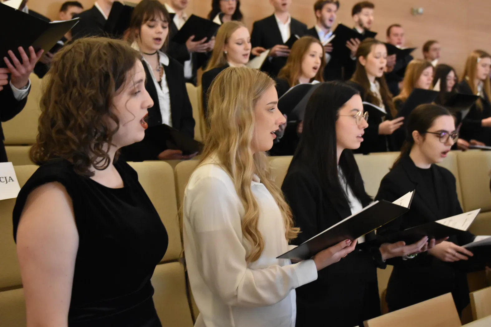 – Stojąc dziś przed państwem, czujemy ogromną dumę i wdzięczność. To moment, który jest zwieńczeniem wielu lat nauki, pasji i pracy, ale także początkiem nowych wyzwań i możliwości. Pragniemy wyrazić naszą wdzięczność władzom dziekańskim, wykładowcom, rodzicom i przyjaciołom. Dzisiejsza uroczystość przypomina, że każdy z nas jest częścią większej wspólnoty ludzi, którzy wierzą w wartość sztuki, wiedzy i pasji. Zabieramy stąd nie tylko dyplomy, ale przede wszystkim doświadczenia, przyjaźnie i wspomnienia, które pozostaną z nami na zawsze. W imieniu wszystkich absolwentów pragnę obiecać, że będziemy kontynuować swoją drogę z odwagą, kreatywnością i zaangażowaniem, aby w przyszłości z dumą reprezentować naszą uczelnię – mówiła Emilia Tokajuk.