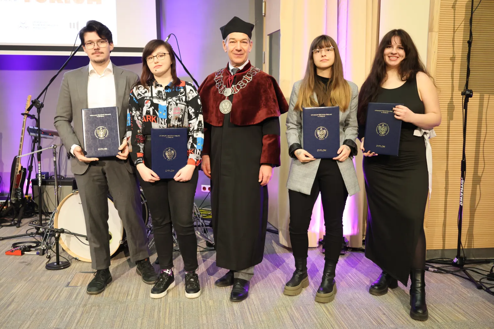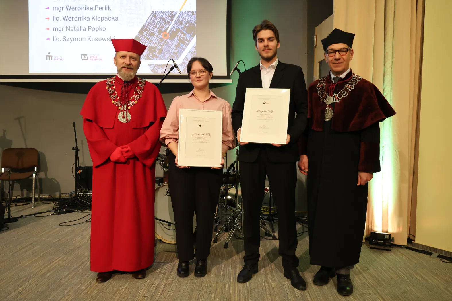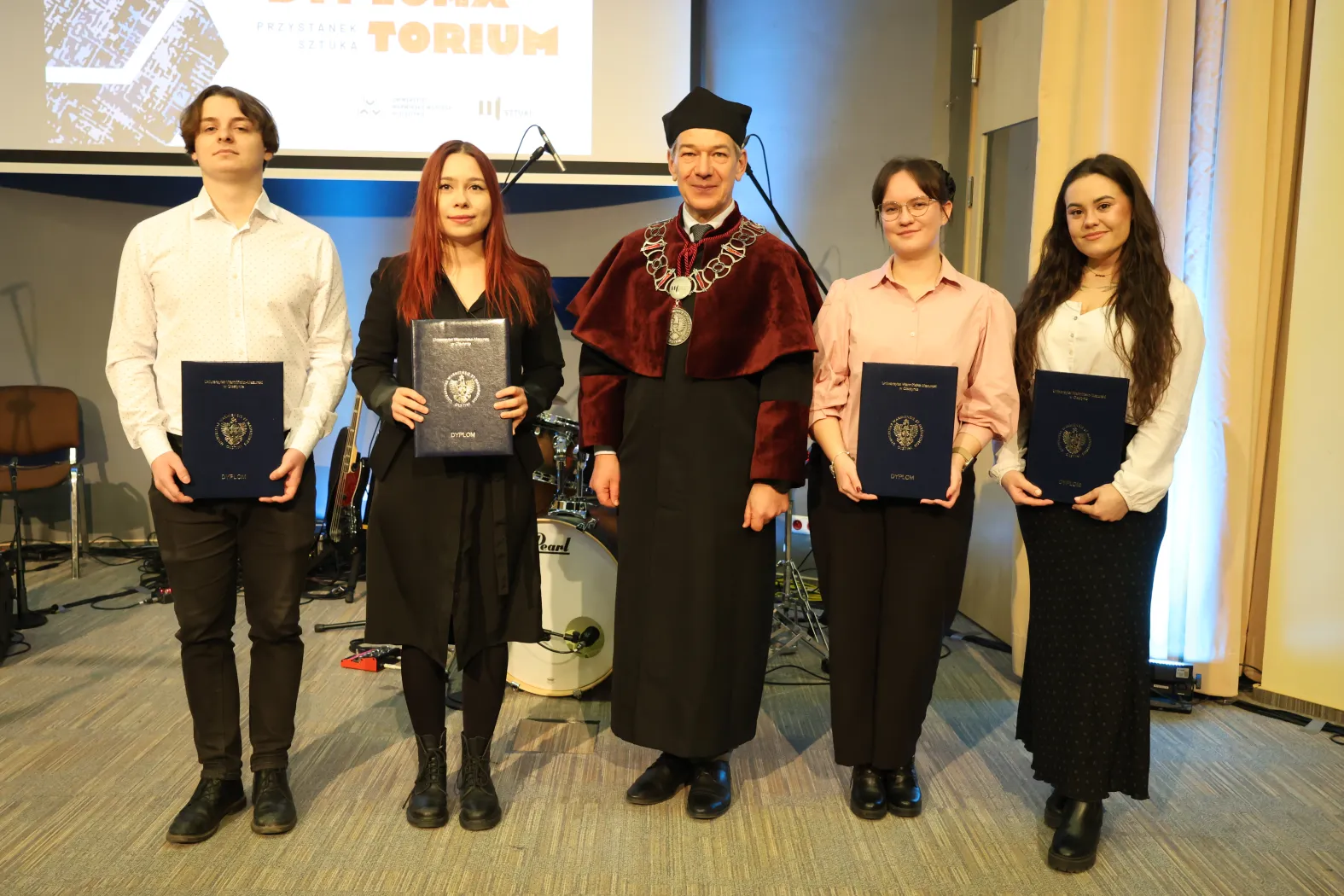 W trakcie uroczystości szczególnie gromkimi brawami licznie zgromadzonej publiczności, zostali nagrodzeni pierwsi absolwenci studiów pierwszego stopnia na kierunku produkcja muzyczna i realizacja dźwięku.