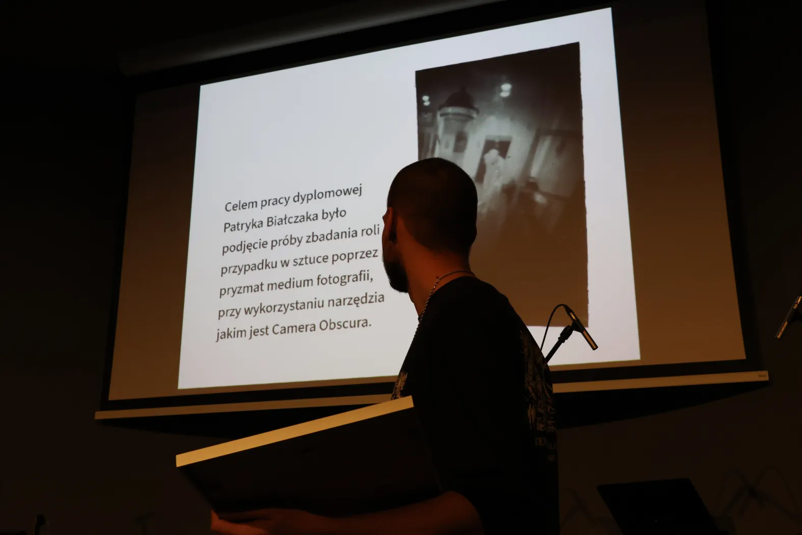 – Warto wracać do starych tematów i na nowo je roztrząsać, z perspektywy czasów współczesnych. Można powiedzieć, że dopisywało mi szczęście nowicjusza, bo dzięki mojemu promotorowi, prof. Grzegorzowi Jarmocewiczowi, otrzymałem możliwość eksperymentowania. Kiedy wynaleziono camera obscura, ludzie dążyli do tego, żeby możliwie najrealniej uwieczniać rzeczywistość, a ja koncentrowałem się na czymś innym, na tych wszystkich niedoskonałościach, uszczerbkach – mówił Patryk Białczak, obecnie student studiów magisterskich na tym samym kierunku, które planuje zakończyć tworząc interaktywne plakaty pod kierunkiem prof. Jarosława Bujnego, a także kontynuować pracę z camera obscura, m.in. w świecie podwodnym, bo oprócz pasji do sztuki, uwielbia również nurkować.