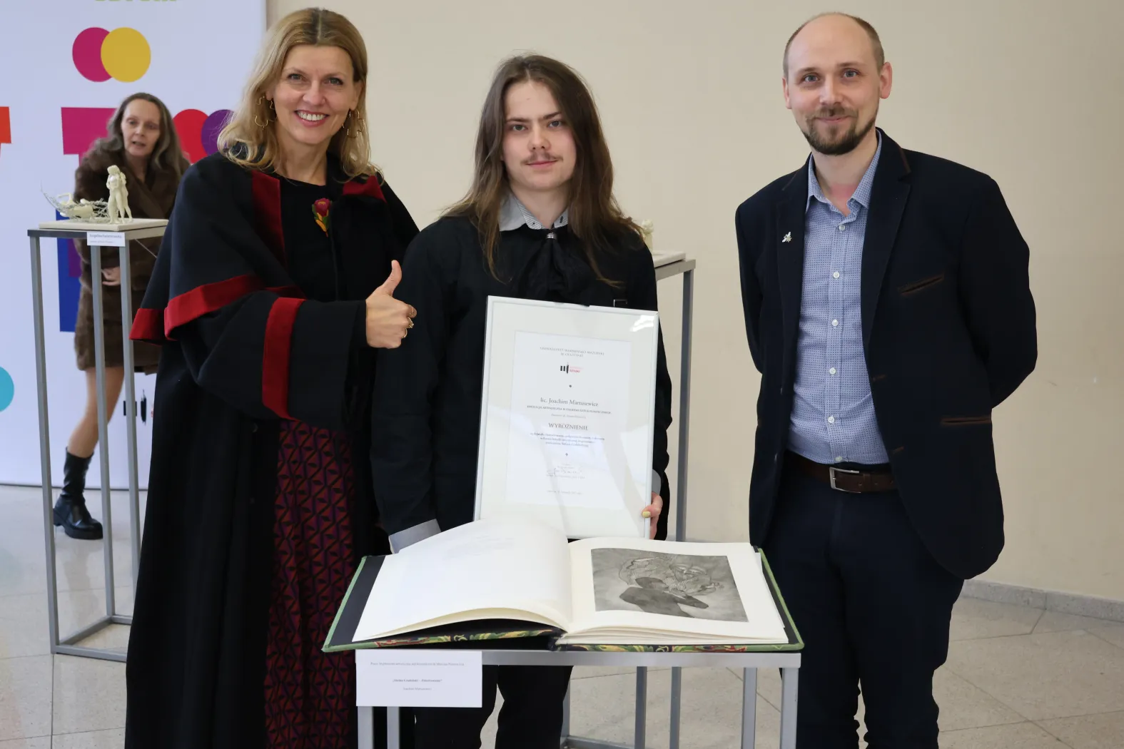 – Artyści potrafią zadawać ważne i nieoczywiste pytania, a także szukać na nie odpowiedzi. Opowiadać o tym, o czym inni milczą. Po trzecie, artyści tworzą przestrzeń do refleksji i stwarzają możliwość spojrzenia na rzeczywistość z całkowicie innego punktu widzenia. I wreszcie, artyści nie boją się eksperymentować. Gratuluję wam osiągnięć i życzę, aby nigdy nie zabrakło wam odwagi – żebyście szli swoją drogą, która nie zawsze będzie usłana różami – mówił prof. Paweł Wysocki.