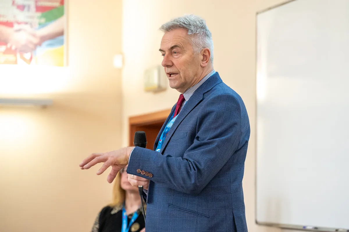 – To „między” jest tutaj niezwykle wieloaspektowe. Jeżeli mamy mówić o przekładzie, o wysiłku, który prowadzić ma od jednego języka, od jednego świata ku drugiemu językowi, drugiemu światu, to tutaj przestrzeń pomiędzy jest wypełniana twórczością, działalnością, trudem, aktywnością i kreatywnością tego, który przekłada. Musi się on zanurzyć w jedną i drugą przestrzeń i stworzyć zupełnie nową jakość, ale wybudowaną bardzo wyraźnie na kanwie tego, co zaprojektował autor – podkreślał dziekan, zaznaczając, że jest też bardzo dumny z uniwersyteckiej anglistyki, która jest niezwykle ważną częścią Wydziału Humanistycznego, bo najliczniejszą. – Nigdy nie było problemu z naborem. Młodzi ludzie chcą się uczyć angielskiego i chcą się go uczyć w Olsztynie, na naszym Uniwersytecie. To dla nas bardzo ważne.