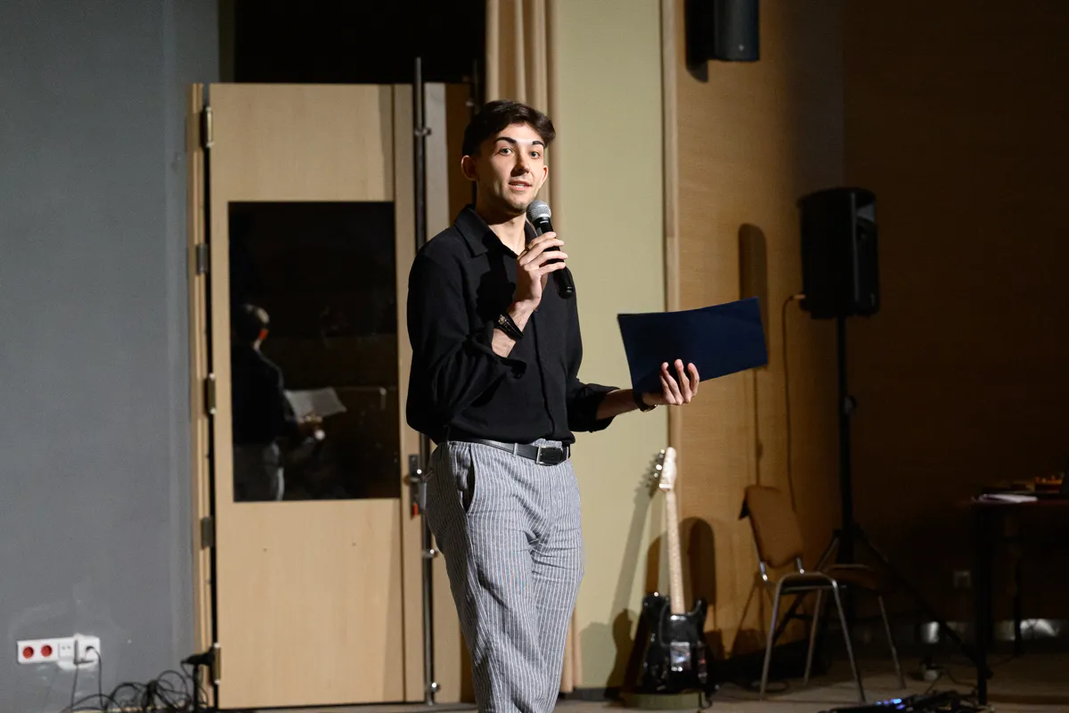 Mateusz Hełminiak jest studentem I roku studiów II stopnia na kierunku Lingwistyka stosowana angielsko-niemiecka na Uniwersytecie Kazimierza Wielkiego w Bydgoszczy. Na konferencję przyjechał z dr Agnieszką Kurzyńską oraz dr. Michałem Sobczakiem, aby opowiedzieć o środkach ekspresji językowej w komentarzach, jakie ukazały się w związku z kontrowersjami sędziowskimi w półfinałowym meczu Ligi Mistrzów pomiędzy Realem Madryt a Bayernem Monachium, który odbył się 8 maja 2024 r.