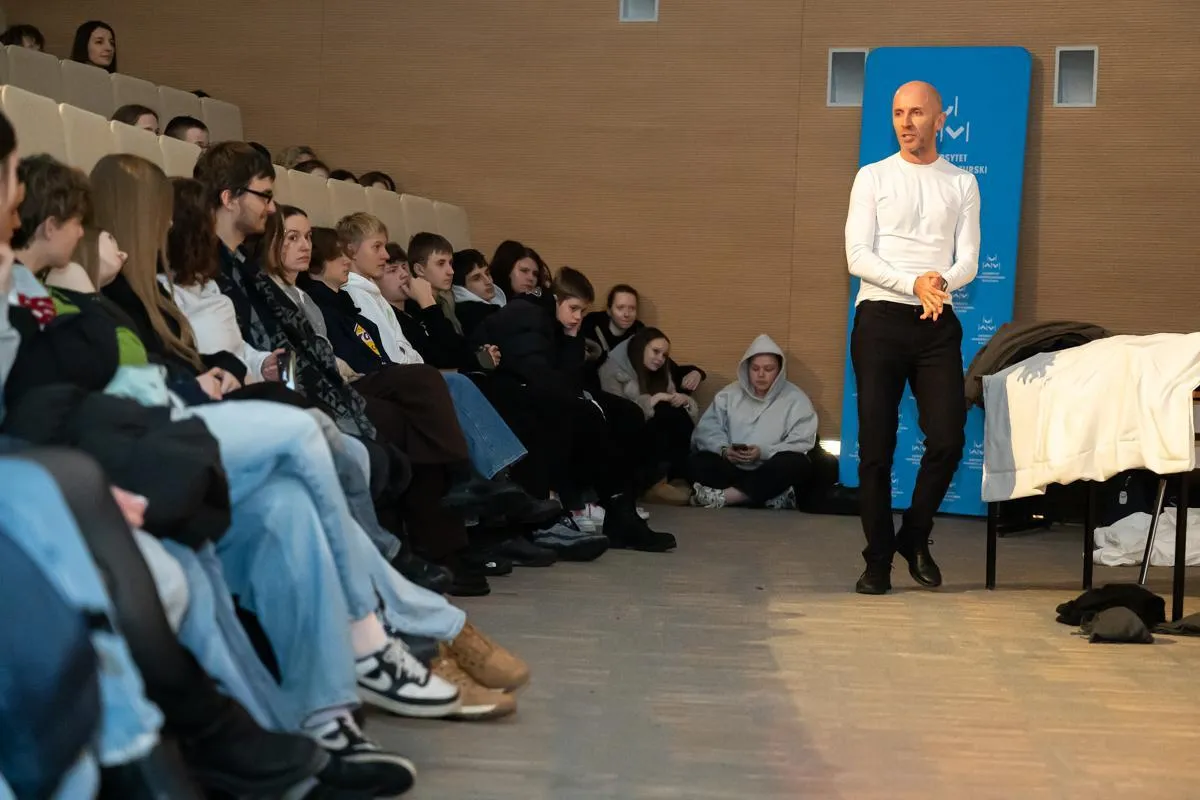Z kolei w rolę „Biznesmena nr 1” oraz przygotowującego studentów, wcielił się Hubert Arentewicz, absolwent filologii angielskiej na UWM, a obecnie doktorant w Szkole Doktorskiej UWM w dyscyplinie literaturoznawstwo.