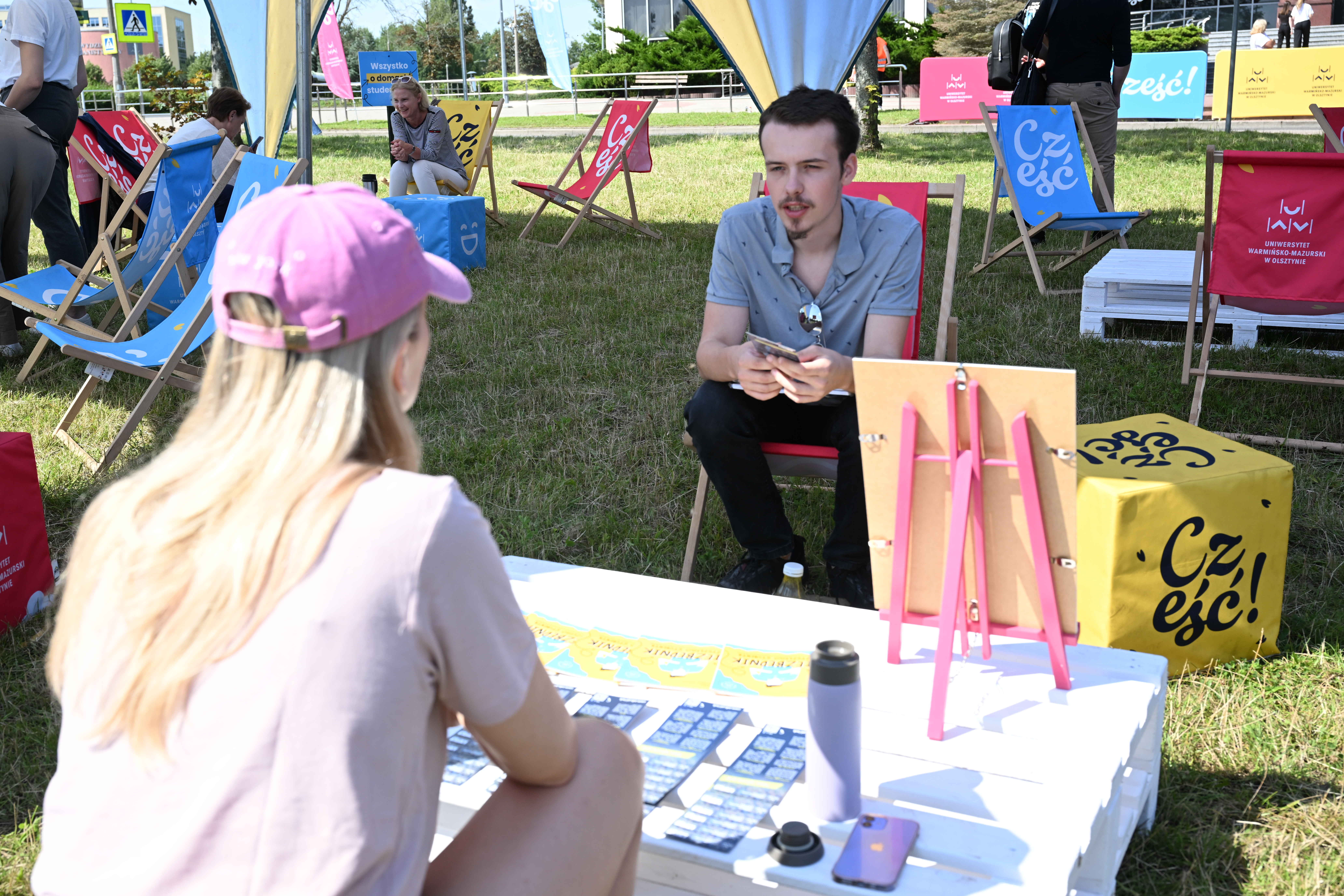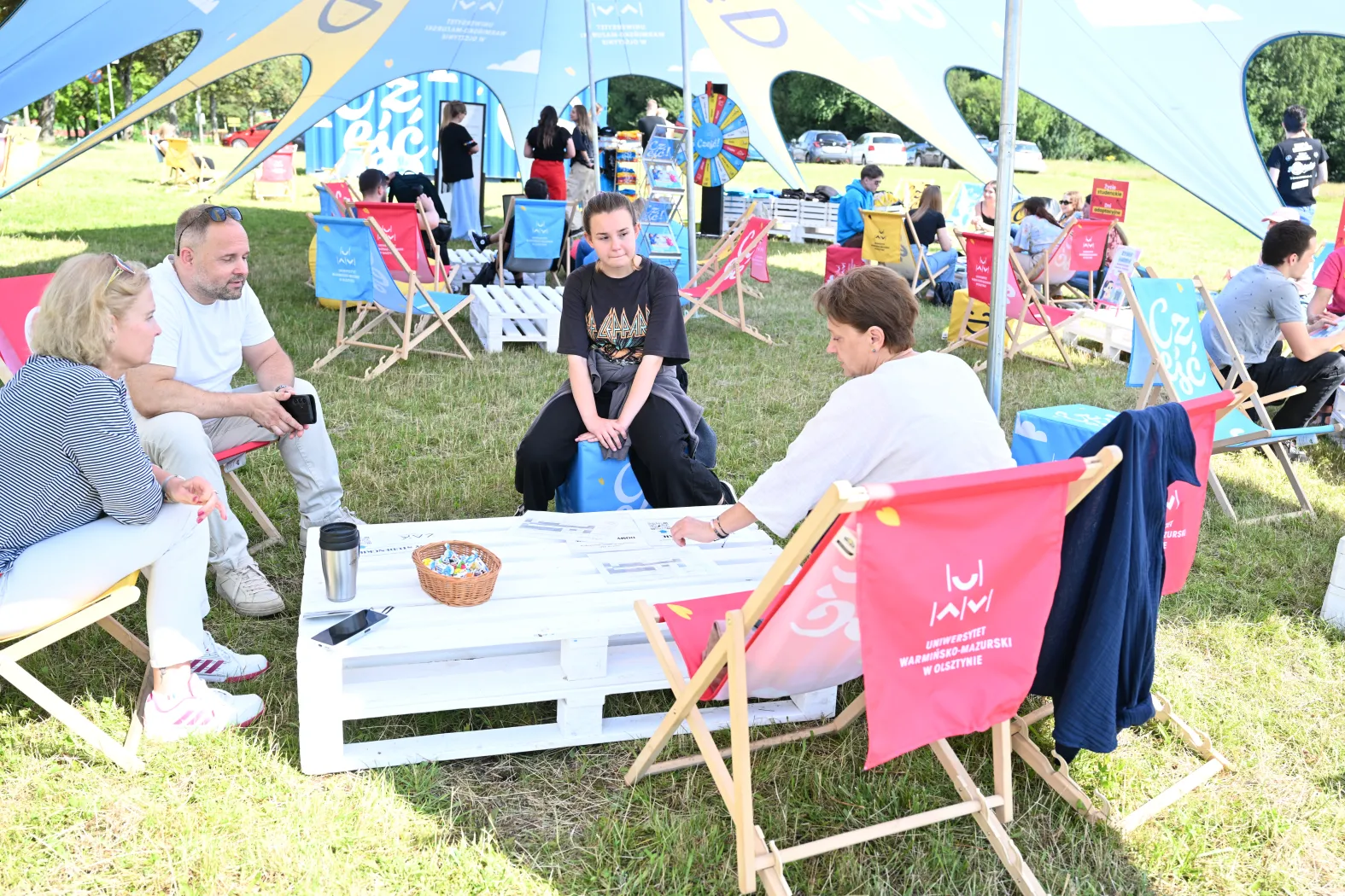 – Mamy również strefę chilloutu z leżakami czy miękkimi pufami, na których można chwilę odpocząć i porozmawiać z rodziną czy ze znajomymi. Trzeba również pamiętać, że aby zakręcić kołem fortuny, najpierw trzeba polubić profile UWM w mediach społecznościowych. Gadżety, jakie czekają na przyszłych studentów, to m.in. bluzy, kubki czy wlepki. Zapraszamy do nas, aby trochę się odstresować i spędzić czas w przyjaznej atmosferze – dodaje Emilia Kalisz z Biura ds. Promocji Centrum Marketingu i Mediów UWM.