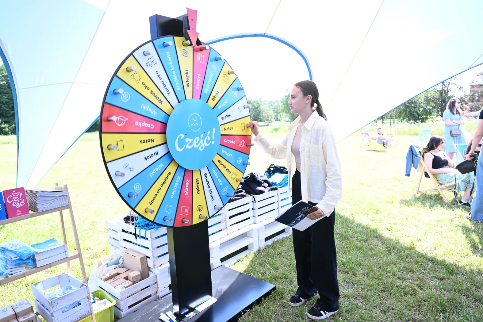 Do tego, żeby odwiedzić Strefę Kandydata UWM nawet, jeśli nie rozpoczyna się studiów w roku akademickim 2025/2026 zachęcają chociażby atrakcje przygotowane przez pracowników Centrum Marketingu i Mediów UWM. W strefie relaksu i zabawy można: zakręcić kołem fortuny i wygrać uniwersyteckie gadżety, które z pewnością umilą czas studiowania; zagrać w wielkoformatowe gry czy zrobić sobie pamiątkowe zdjęcie Instaxem.