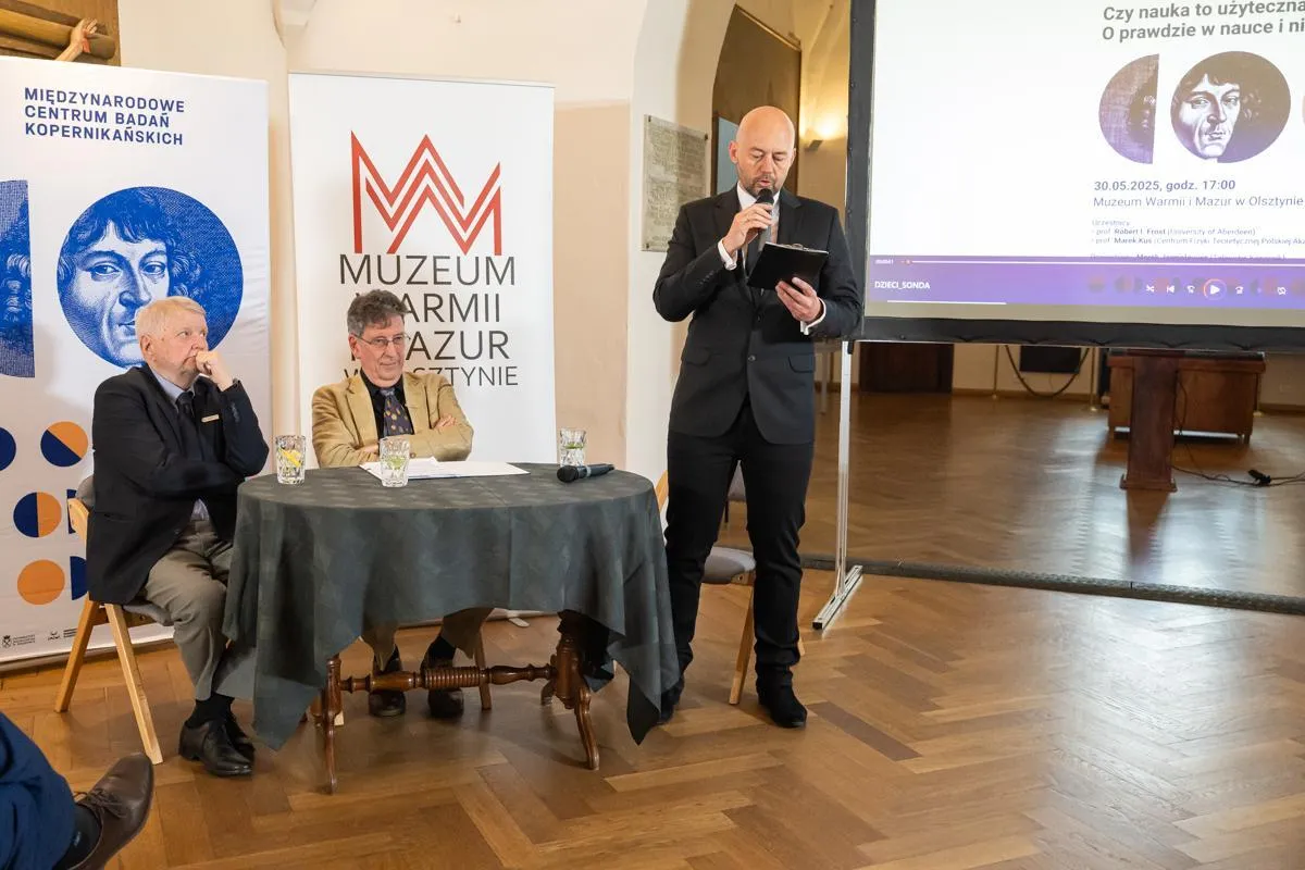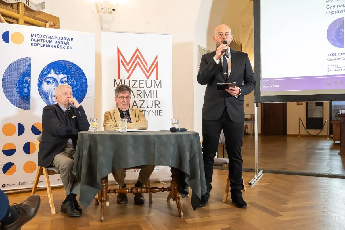 W debacie, który odbyła się w Salach Kopernikańskich Muzeum Warmii i Mazur w Olsztynie wzięli udział naukowcy reprezentujący znajdujące się na przeciwległych biegunach dziedziny nauki. Prof. Robert Frost, historyk, profesor Uniwersytetu w Aberdeen (Szkocja), specjalizujący się w historii Europy Wschodniej i Północnej, zwłaszcza Rzeczpospolitej Obojga Narodów oraz prof. Marek Kuś, fizyk, profesor w Centrum Fizyki Teoretycznej Polskiej Akademii Nauk, specjalista w zakresie fizyki matematycznej, informatyki kwantowej oraz filozofii nauk przyrodniczych.
