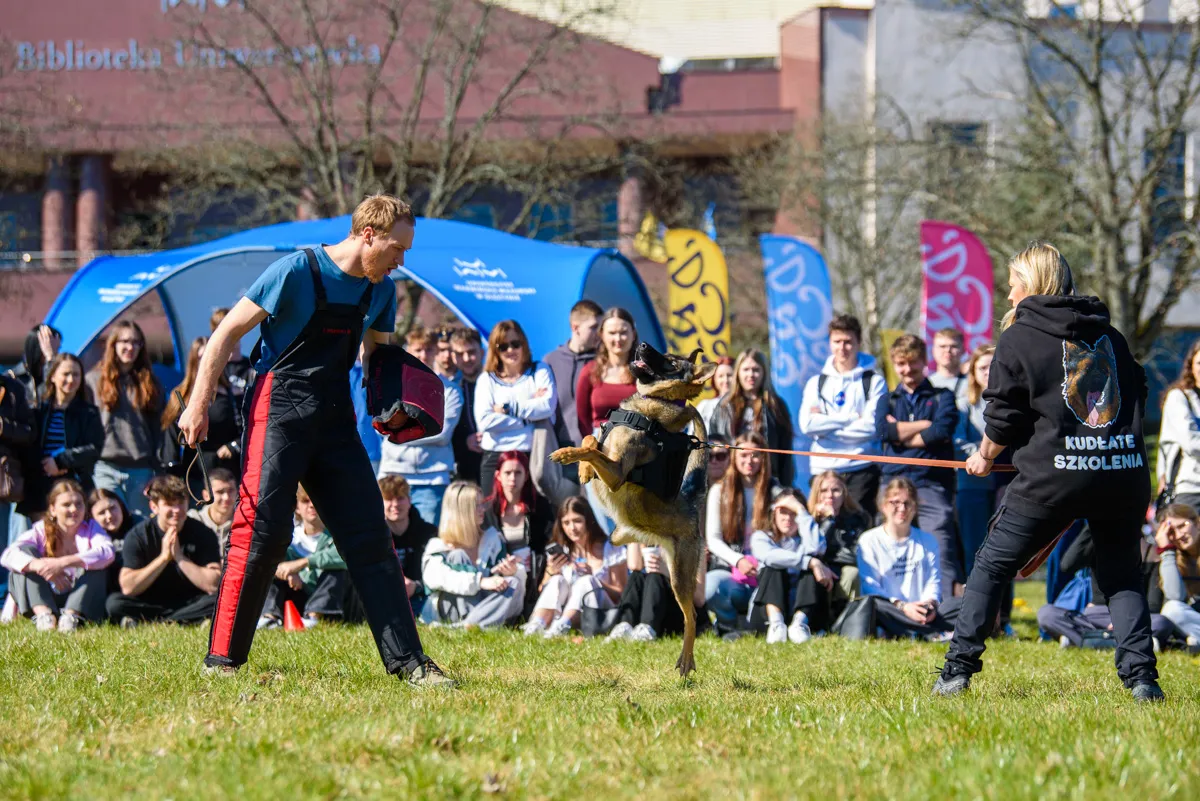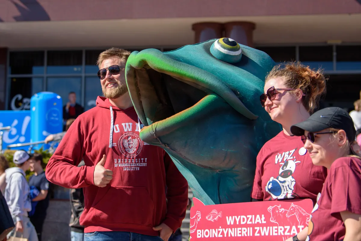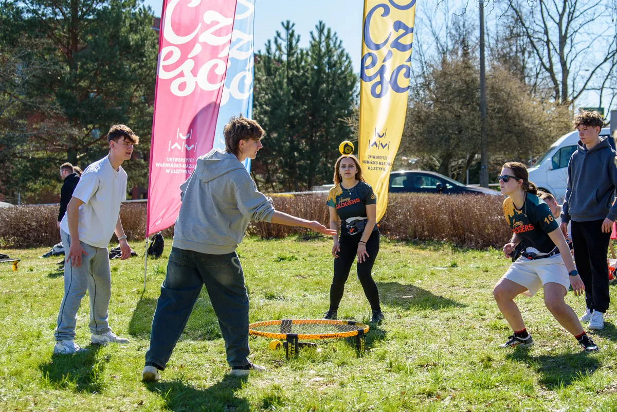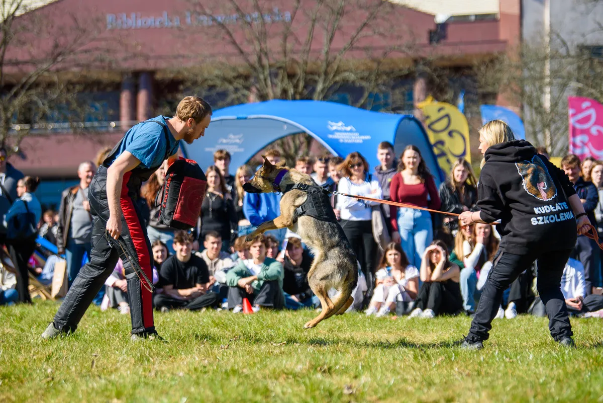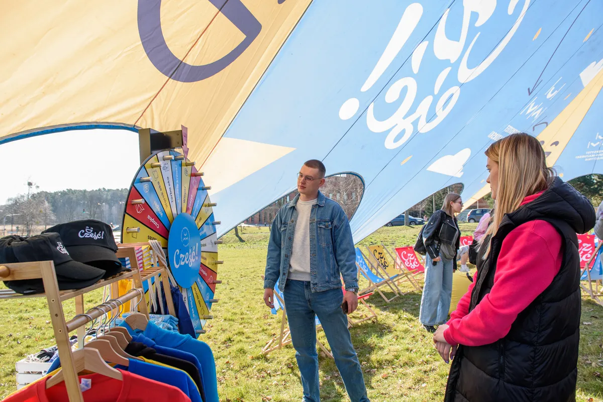 Wspaniała pogoda, która towarzyszyła tegorocznemu Dniu Otwartemu, sprzyjała także spędzaniu czasu w strefie „Cześć”. Przed budynkiem biblioteki stanął kolorowy namiot, w którym można było zakręcić kołem fortuny i wygrać nagrody, spędzić miło czas, korzystając z gier wielkoformatowych, złapać trochę oddechu i nawiązać nowe znajomości, a także… uwiecznić te dobre chwile i zabrać ze sobą zdjęcie. W plenerze odbywały się też pokazy szkolenia psów czy treningi z przedstawicielami drużyn sportowych związanych z UWM. Można było również zajrzeć do mobilnego punktu edukacyjnego „Las w szkatułce”, ambulansu z Wydziału Medycyny Weterynaryjnej czy karetki z Centrum Symulacji Medycznej Wydziału Lekarskiego.