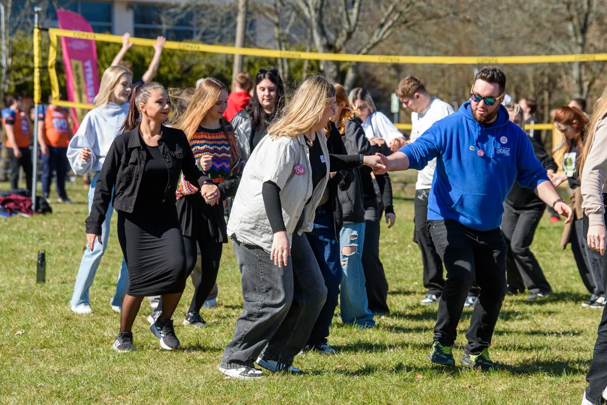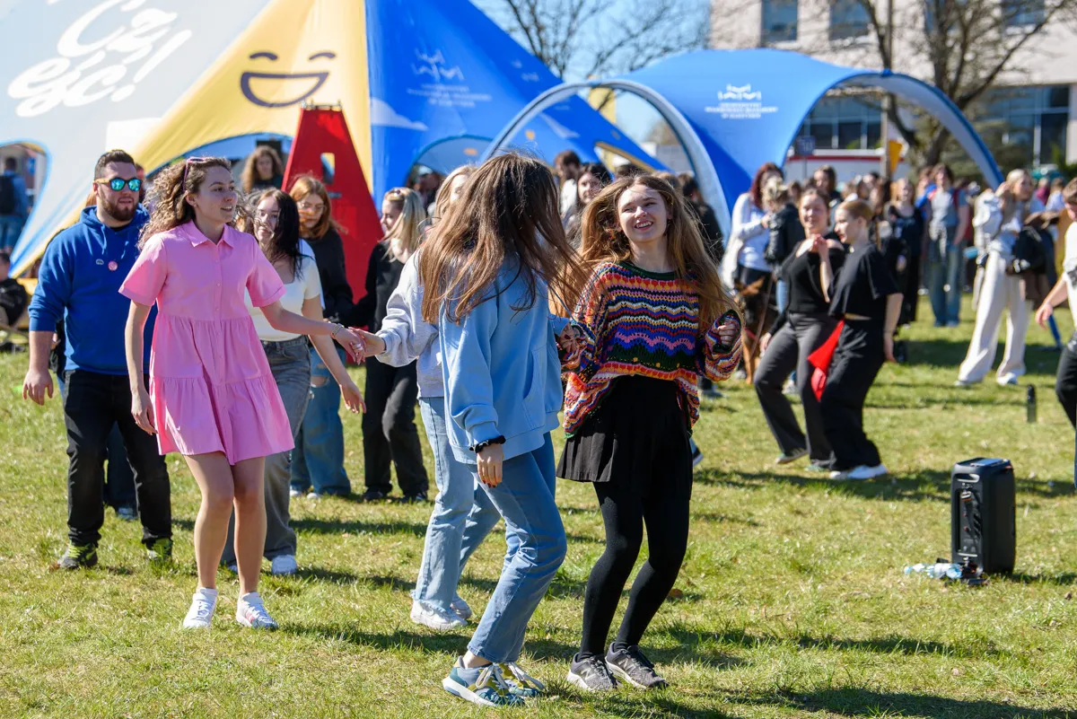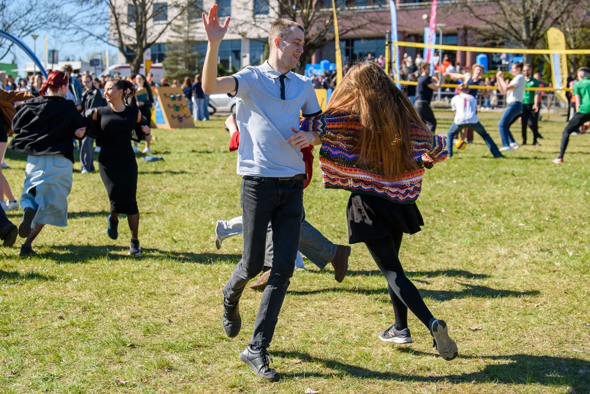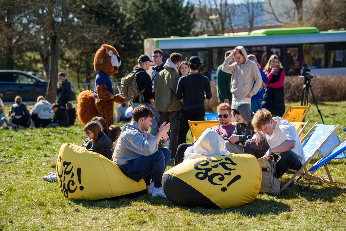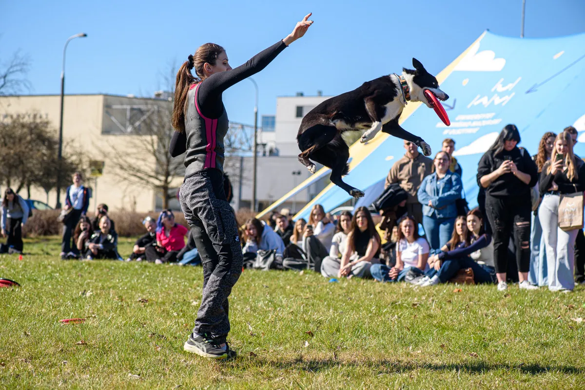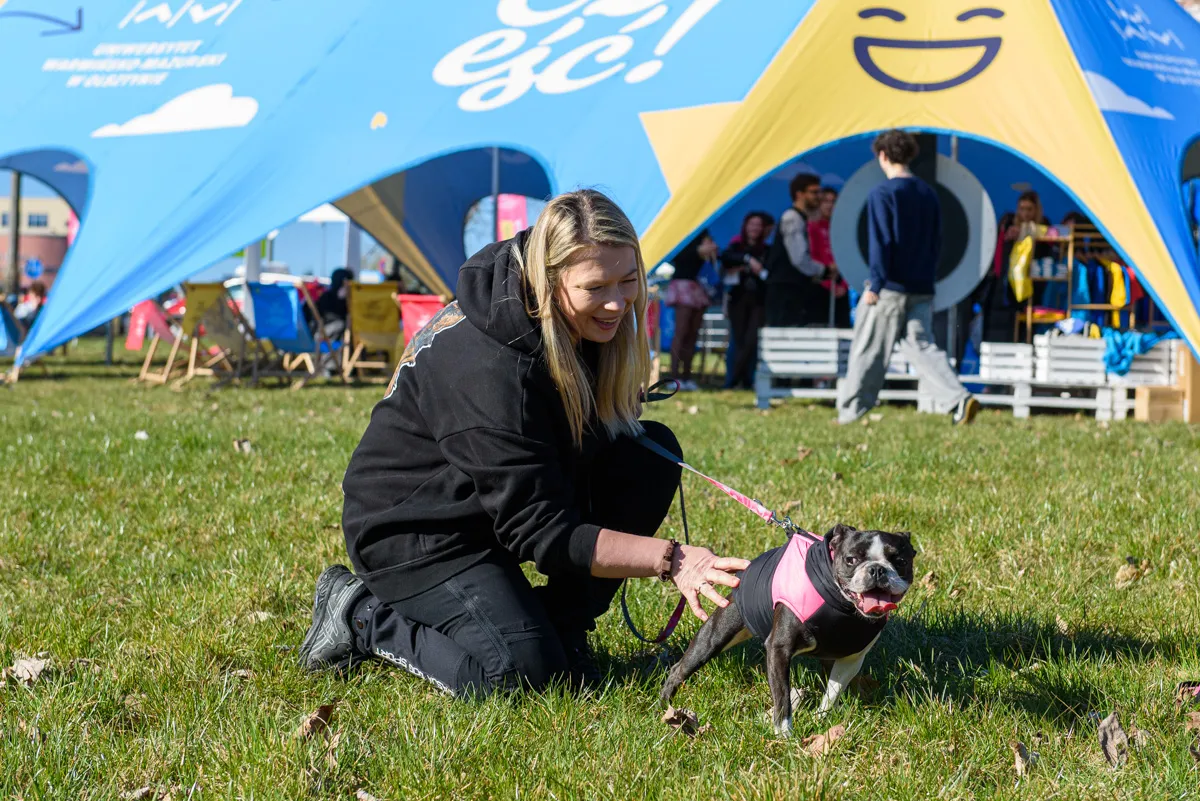 Wspaniała pogoda, która towarzyszyła tegorocznemu Dniu Otwartemu, sprzyjała także spędzaniu czasu w strefie „Cześć”. Przed budynkiem biblioteki stanął kolorowy namiot, w którym można było zakręcić kołem fortuny i wygrać nagrody, spędzić miło czas, korzystając z gier wielkoformatowych, złapać trochę oddechu i nawiązać nowe znajomości, a także… uwiecznić te dobre chwile i zabrać ze sobą zdjęcie. W plenerze odbywały się też pokazy szkolenia psów czy treningi z przedstawicielami drużyn sportowych związanych z UWM. Można było również zajrzeć do mobilnego punktu edukacyjnego „Las w szkatułce”, ambulansu z Wydziału Medycyny Weterynaryjnej czy karetki z Centrum Symulacji Medycznej Wydziału Lekarskiego.