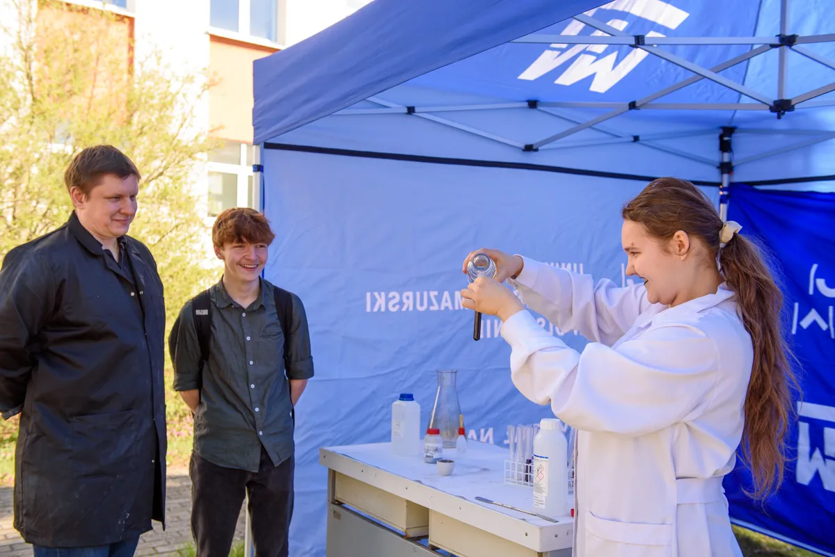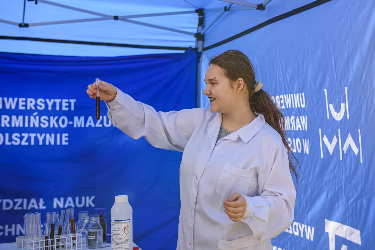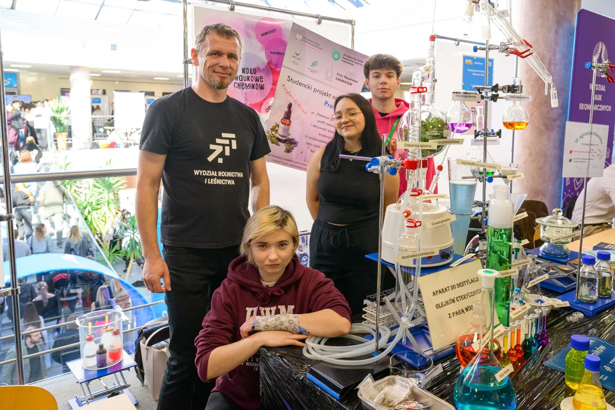 – Zależało nam przede wszystkim, aby pokazać, że chemia ma sens, może być barwna i ciekawa. Zaprezentowaliśmy również specjalistyczną, nowoczesną aparaturę, którą posiadamy w Katedrze Chemii. Obecnie zajmujemy się badaniami w ramach grantu, a konkretnie chcemy stworzyć biopestycyd, czyli pestycyd zrobiony z roślin występujących w naszym regionie, takich jak świerk czy sosna. Można było też wziąć udział w konkursie i rozpoznać olejek po jego zapachu. Na tych, którzy dobrze odgadli, czekały nagrody – mówiła Klaudia Jakubowska, przewodnicząca koła.