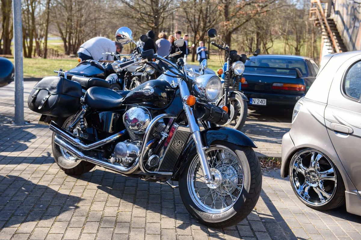 Oliwier Licki i Jakub Zawistowski, studenci I roku na kierunku mechanika i budowa maszyn prezentowali swoje motocykle – KTM duke 390 z 2017 r. oraz hondę shadow 750 z 1999 r.