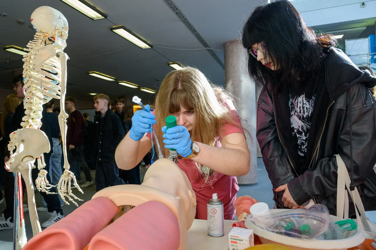 Nie tylko Biblioteka Uniwersytecka i jej okolice tętniły tego dnia życiem. W całym Kortowie na poszczególnych wydziałach organizowane były wykłady, pokazy i warsztaty, a uczniowie szkół ponadpodstawowych mogli zwiedzać laboratoria i pracownie. Takie atrakcje zapewnili m.in. pracownicy z Katedry Fizjoterapii Szkoły Zdrowia Publicznego. Młodzież mogła zobaczyć pracownie anatomii, fizykoterapii, kinezyterapii, hydroterapii i masażu. Miała też okazję uczestniczyć w wybranych zabiegach fizjoterapeutycznych, m.in. z wykorzystaniem wirtualnej rzeczywistości. Z kolei studenci ratownictwa medycznego przygotowali dla uczniów pokaz zaawansowanych zabiegów resuscytacyjnych (ALS).