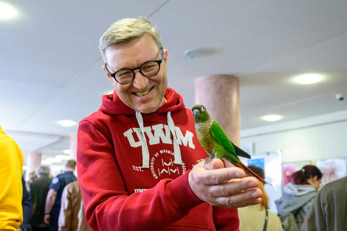 – Pokazaliśmy różne ptasie ciekawostki – myślę, że coś innego niż zwykle. W tym roku postanowiliśmy pokazać różne rasy i odmiany barwne gołębi, a także była z nami papużka Karolek, która potrafi naśladować ludzkie dźwięki. Poza tym można było nacieszyć oko pięknymi ptasimi piórami. Na co dzień pracujemy na fermie doświadczalnej i badamy ptaki produkcyjne, a później publikujemy otrzymane wyniki. Wyjeżdżamy również na staże badawcze i naukowe – wyjaśniał Łukasz Szymański, przewodniczący koła drobiarzy.