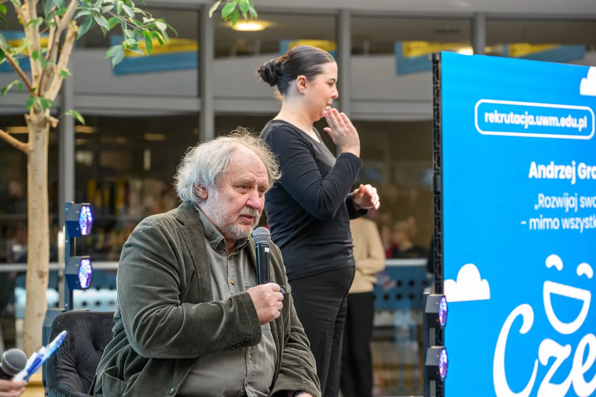 Pierwszym z gości specjalnych, który pojawił się w strefie spotkań Dnia Otwartego UWM, był Andrzej Grabowski, aktor filmowy, teatralny, telewizyjny, dubbingowy, a także scenarzysta i reżyser, któremu ponadpokoleniową rozpoznawalność przyniosła rola Ferdynanda Kiepskiego w serialu „Świat według Kiepskich”.