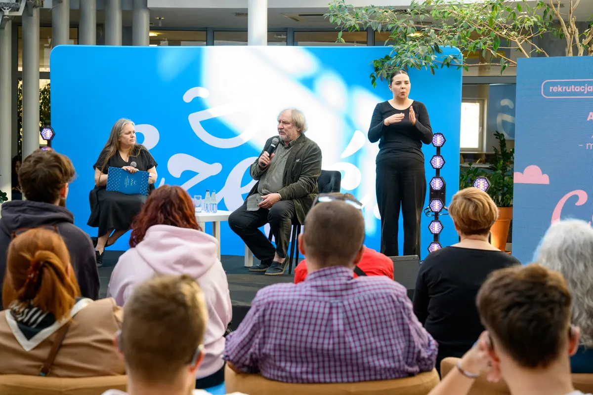 – Jest coś takiego jak motywacja wewnętrzna i zewnętrzna. Ta pierwsza tkwi w nas i wynika z naszego światopoglądu oraz systemu wartości. Dlatego warto zadbać o swoje „oprogramowanie”, czyli otoczyć się ludźmi, którzy dmuchają w nasze skrzydła – przekonywał Krzysztof Ibisz. I podzielił się z tłumnie zebraną widownią wyznaniem na temat tego, co ukształtowało go w młodości. – Dla mnie było to katolickie wychowanie, ale także teatr – m.in. Jerzego Grotowskiego, Jerzego Grzegorzewskiego, Józefa Szajny – oraz polscy „poeci wyklęci”, tacy jak Rafał Wojaczek, Andrzej Bursa, Ryszard Milczewski-Bruno czy Edward Stachura. Są również motywacje zewnętrzne, jak wynagrodzenie czy różnego rodzaju nagrody, ale motywacja zewnętrzna nigdy nie będzie silna, jeśli nie będzie dobrej motywacji wewnętrznej. Dopiero wtedy, gdy ją osiągniemy, żaden inny człowiek i żadna niepochlebna opinia nie dadzą rady nas zepchnąć z obranej przez nas drogi.