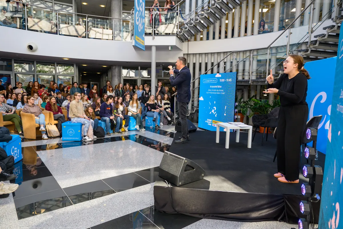 Po Andrzeju Grabowskim sceną w Bibliotece Uniwersyteckiej UWM zawładnął Krzysztof Ibisz, znany prezenter telewizyjny, aktor i dziennikarz. Zdradził on swoją receptę na sukces i sposoby na dobrą organizację. Mówił m.in. o tym, skąd czerpać motywację do działania i jak poradzić sobie z sytuacją, w której ktoś nie do końca życzliwy podcina nam skrzydła.