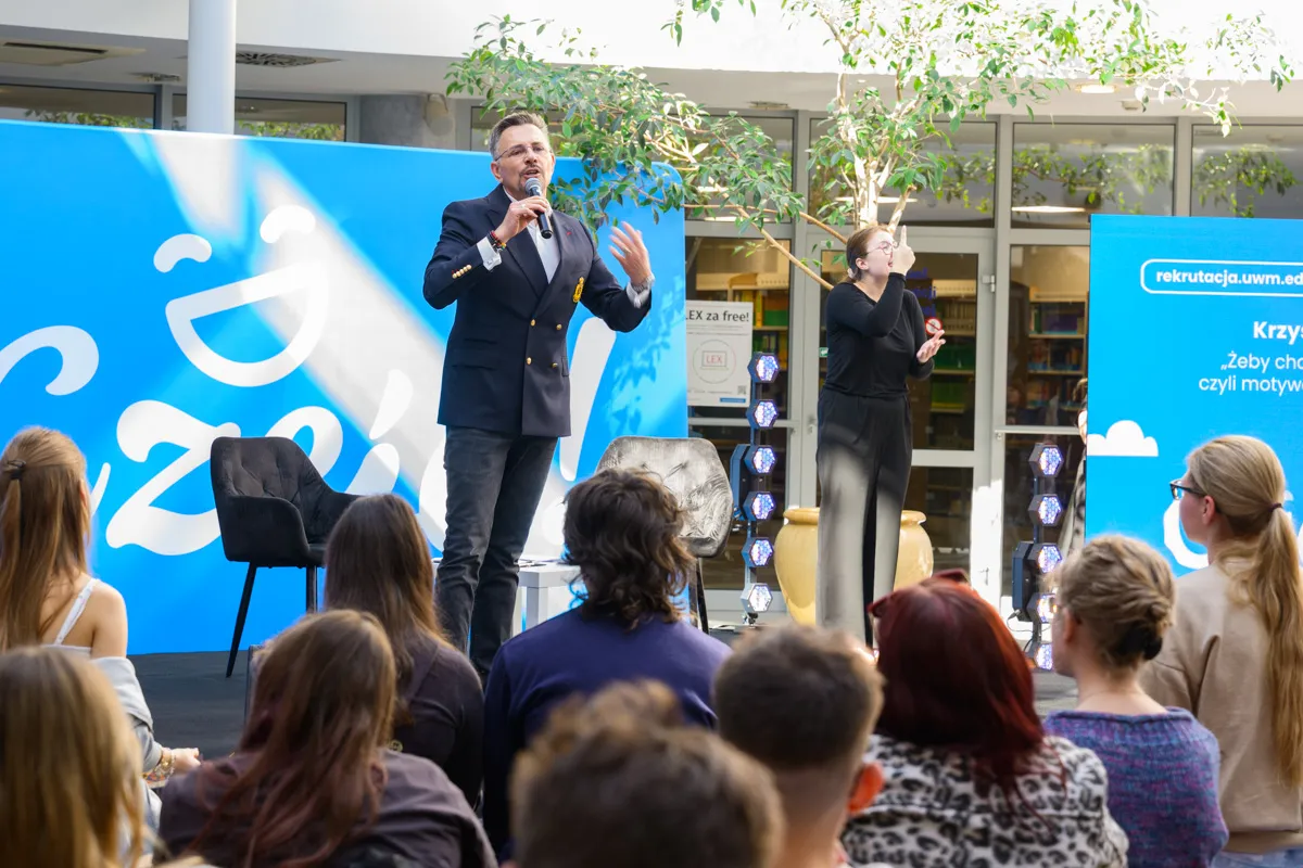 – Dzień Otwarty to możliwość spotkania się ze społecznością akademicką – studentami, wykładowcami, przedstawicielami wydziałów i jednostek uczelnianych, które tworzą UWM. Mamy piękny kampus, niektórzy mówią, że najpiękniejszy w Polsce, ale naszą siłą jest społeczność – podkreślał Michał Orłowski, dyrektor Centrum Marketingu i Mediów. – Wiemy, że dla uczniów z Warmii i Mazur (i nie tylko) przyjazd do Kortowa jest sporą wyprawą i czasami także jedyną okazją, aby poznać naszą uczelnię. To właśnie dlatego chcemy, żeby to był dzień wyjątkowy i tworzymy okazję do spotkania się nie tylko z przedstawicielami uczelni, ale też z osobami znanymi z ekranu czy świata mediów, którzy być może pomogą im w wyborze studiów czy do czegoś po prostu zainspirują. Podczas spotkań staramy się nawiązywać do czasów studenckich gości specjalnych, do tego, co sprawiło, że są w miejscu, w którym są, bo być może wśród uczestników Dnia Otwartego jest osoba, która podąży ich śladami i za kilka lat zrobi wielką karierę w jakiejś dziedzinie.