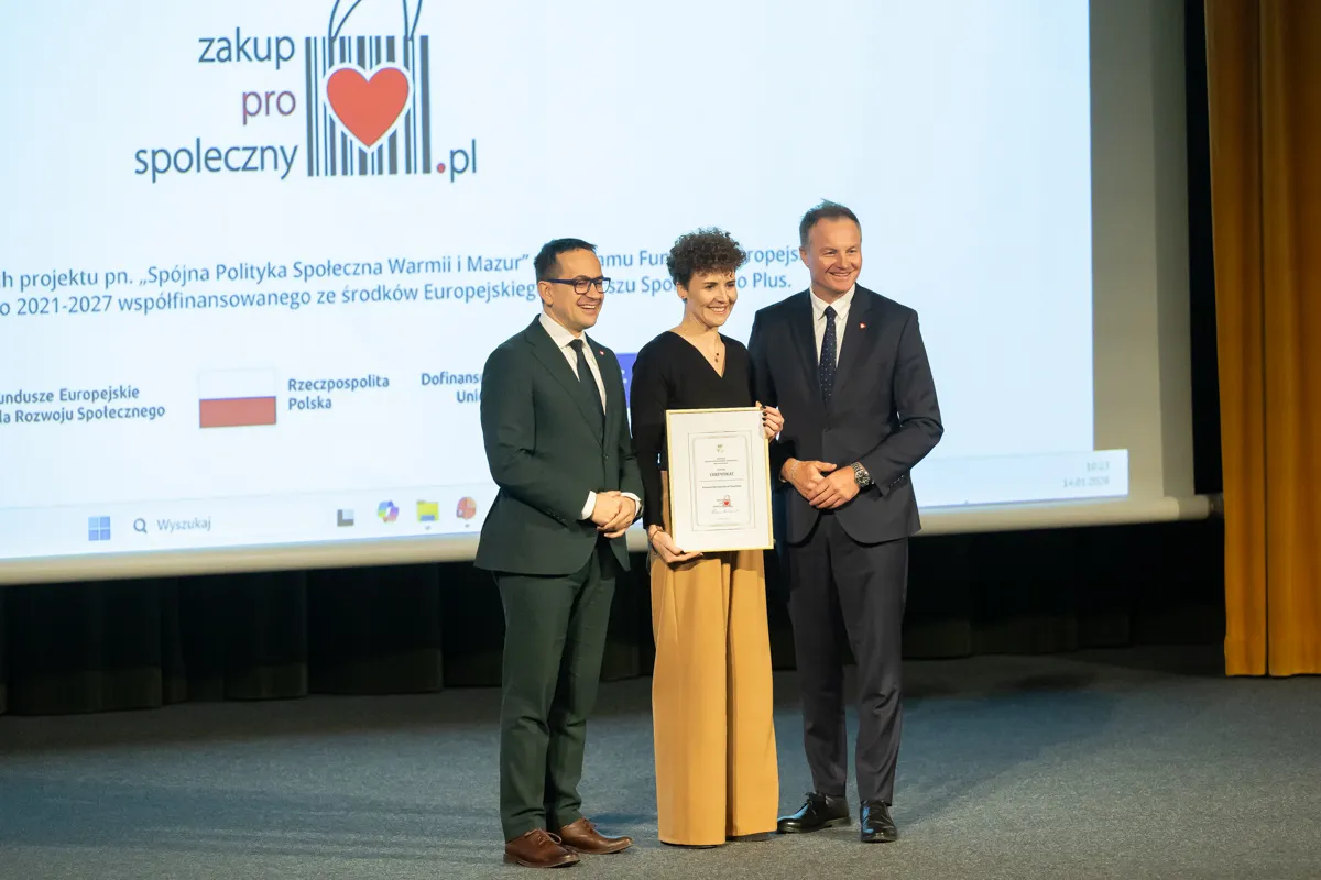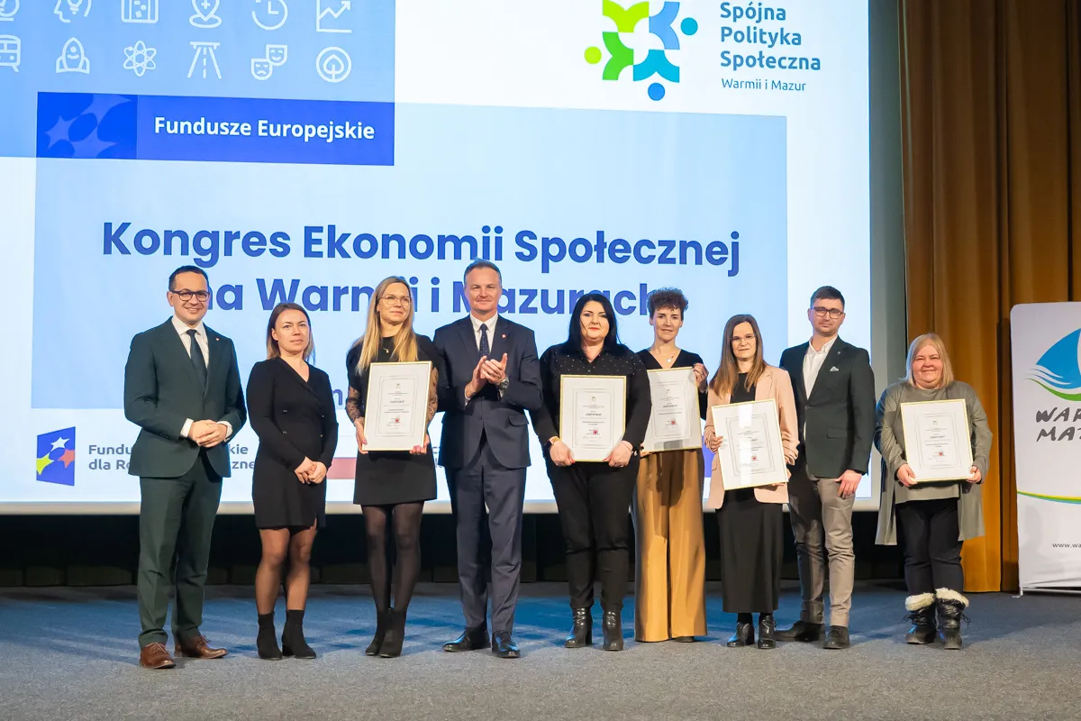 Podmioty, które marszałek województwa wyróżnił podczas kongresu Znakiem Ekonomii Społecznej Zakup Prospołeczny to: Fundacja Kreatywnie w Pieniężnie, Spółdzielnia Socjalna Sąsiedzi w Pieniężnie, Spółdzielnia Socjalna Fabryka Kreatywności w Świątkach, Stowarzyszenie Fabryka Dobra w Elblągu oraz Spółdzielnia Socjalna „Przyjaciele" w Działdowie.