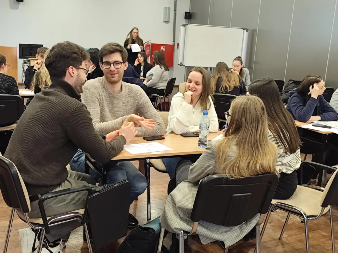 – Nasze przedsiębiorstwo skupia się na zbieraniu od ludzi niepotrzebnych ubrań, na których pracownicy będą personalizować różne designy, aby je później sprzedać. Finansowanie miałoby pochodzić z Funduszu Europejskiego dla Rozwoju Społecznego oraz sprzedaży fizycznej i internetowej wytworzonych produktów – mówił Jakub i zaznaczył, że bardzo dobrze mu się pracowało w grupie. – Na zajęciach wielokrotnie zajmujemy się modelami biznesowymi, jednak rzadko skupiają się one na rozwiązywaniu problemów społecznych. Takie warsztaty zdecydowanie są potrzebne, ponieważ pozwalają nam utrwalić wiedzę, którą zdobyliśmy na studiach i wykorzystać ją w praktyce. Możliwe, że w przyszłości sami stworzymy model biznesowy i założymy przedsiębiorstwo, które posłuży potrzebującym.