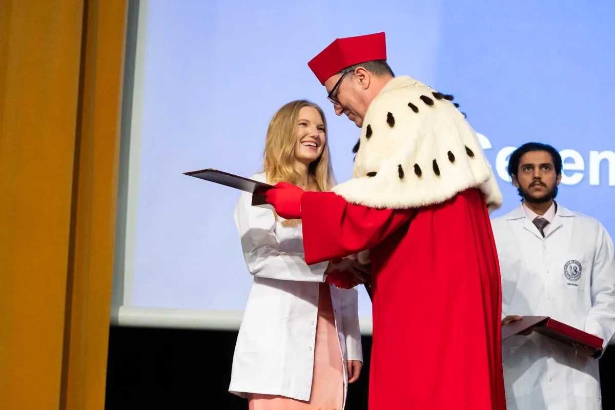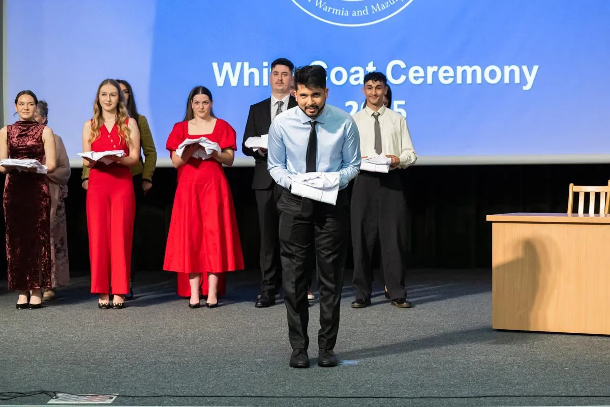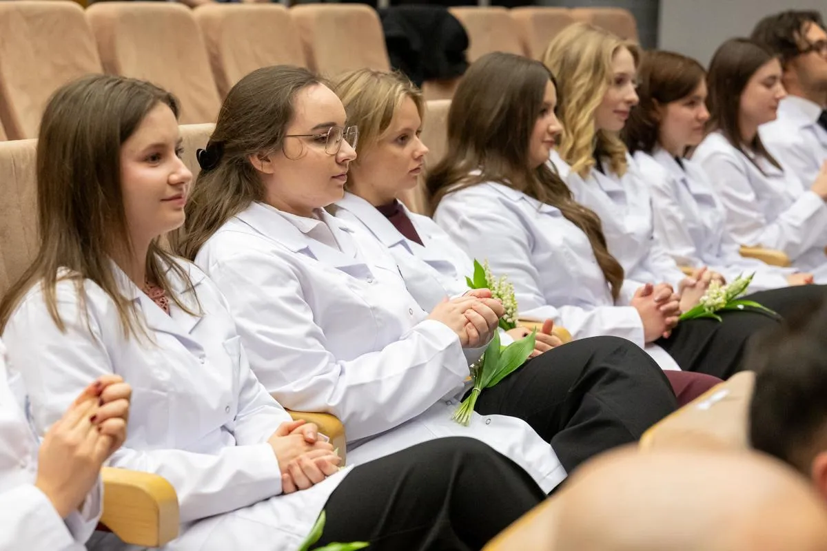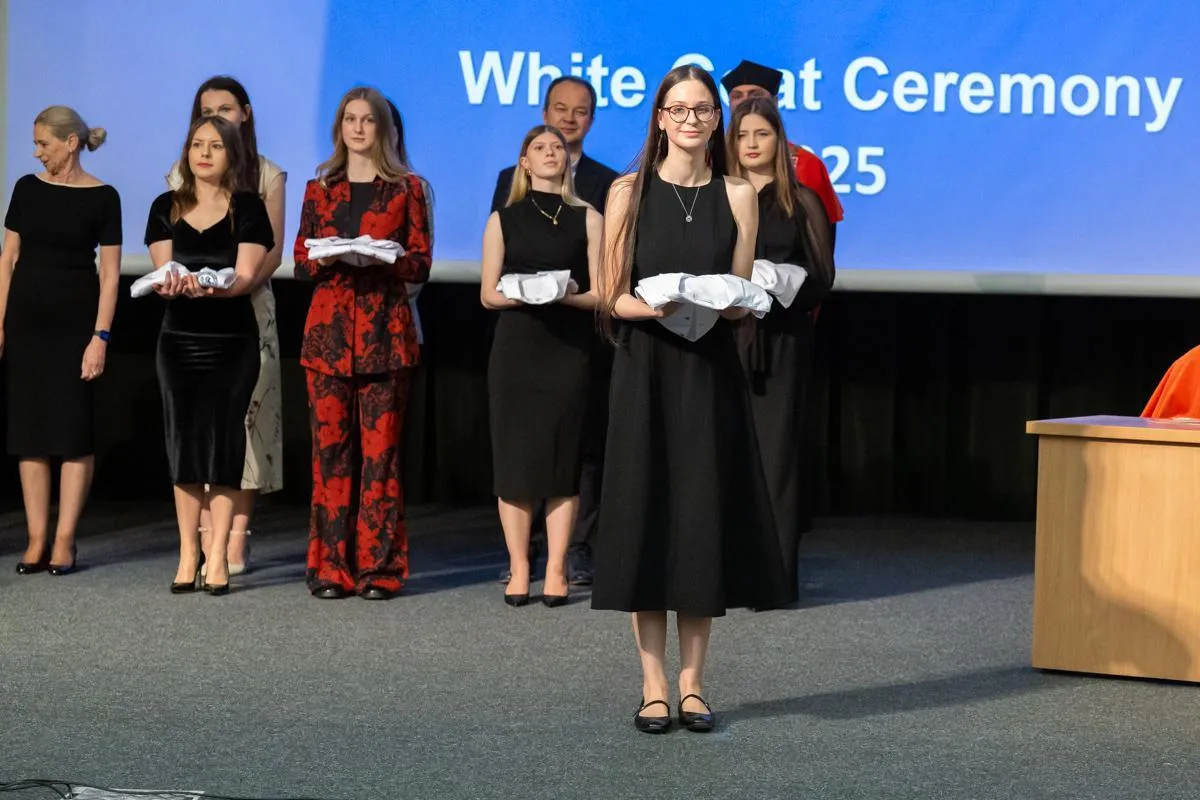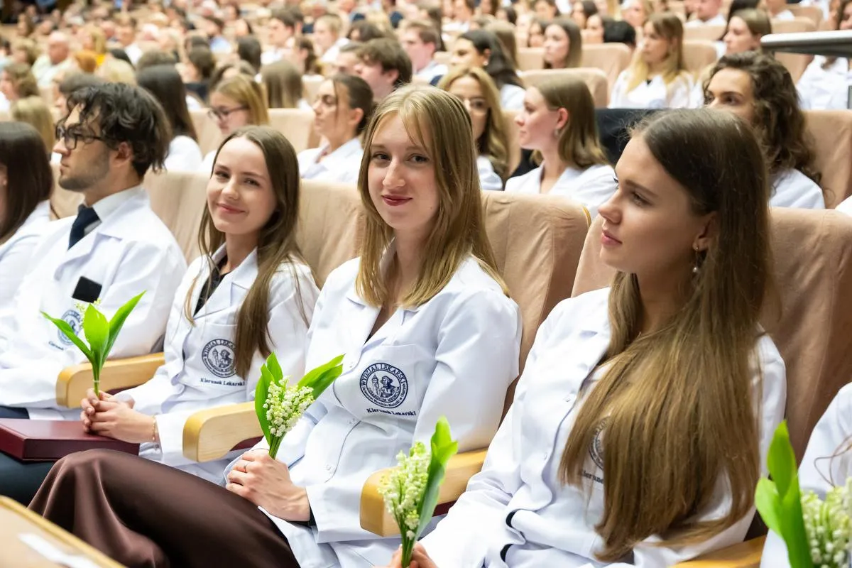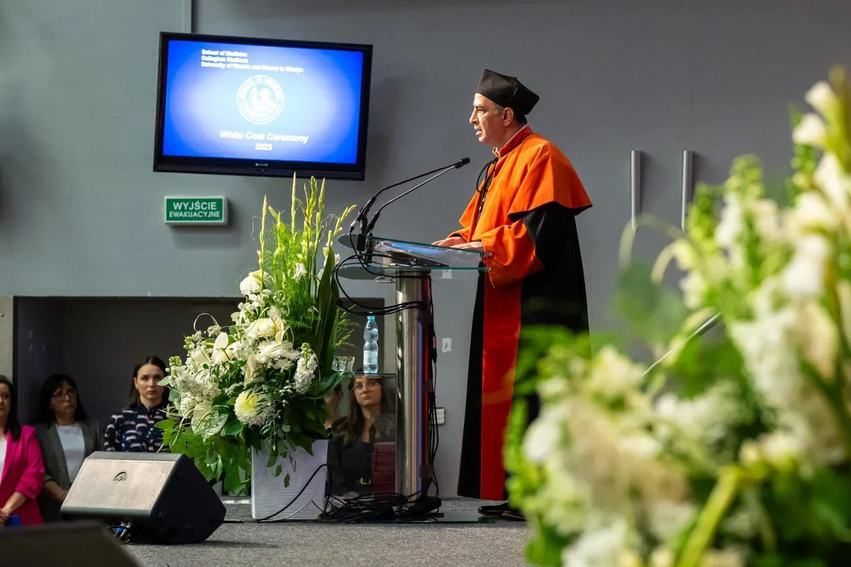 – Dzisiejsza ceremonia jest dla nas zwieńczeniem trzech lat ciężkiej pracy. Za nami wiele wyrzeczeń, nieprzespanych nocy, przeczytanych książek, napisanych egzaminów. Nie było łatwo, ale wytrwaliśmy! Po godzinach spędzonych nad anatomią, biofizyką, niekończącą się walką z fizjologią i patofizjologią, weszliśmy w nowy etap naszej edukacji. Założenie białego fartucha to coś więcej niż symbol rozpoczęcia zajęć klinicznych – to wejście w świat medycyny z nową odpowiedzialnością wobec pacjentów, wiedzy i siebie nawzajem – mówiła studentka i skierowała garść podziękowań:
