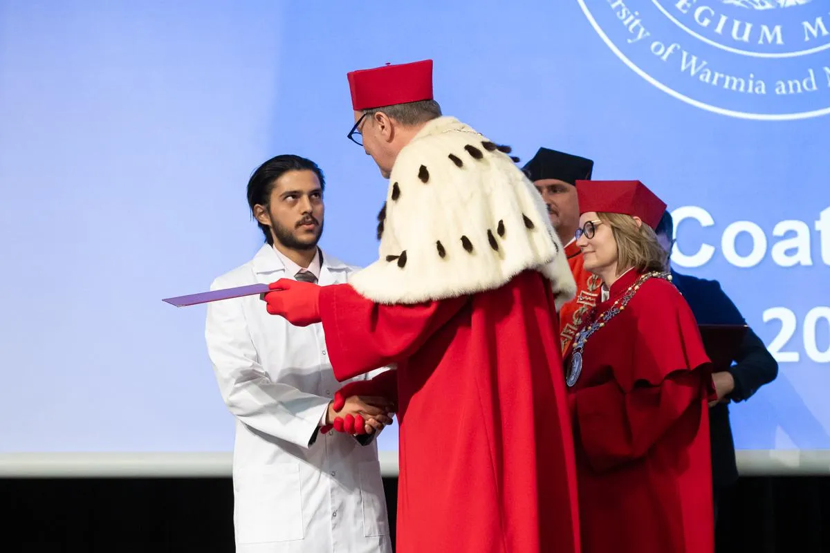 – Moim zdaniem jest to najpiękniejsza ceremonia na Wydziale Lekarskim – mówił dr hab. n. med. Leszek Gromadziński, prof. UWM, dziekan Wydziału Lekarskiego. – Jest to wyjątkowy moment nie tylko dla studentów, ale także dla ich rodziców, dla nas, nauczycieli akademickich, a także dla mentorów. Dzisiaj pogoda nam nie dopisała, bo jest chłodno i pada deszcz, ale tutaj, na tej sali, jest bardzo gorąco – mówił dziekan w przemówieniu otwierającym uroczystość. I dodawał, podkreślając głęboki sens ceremonii: