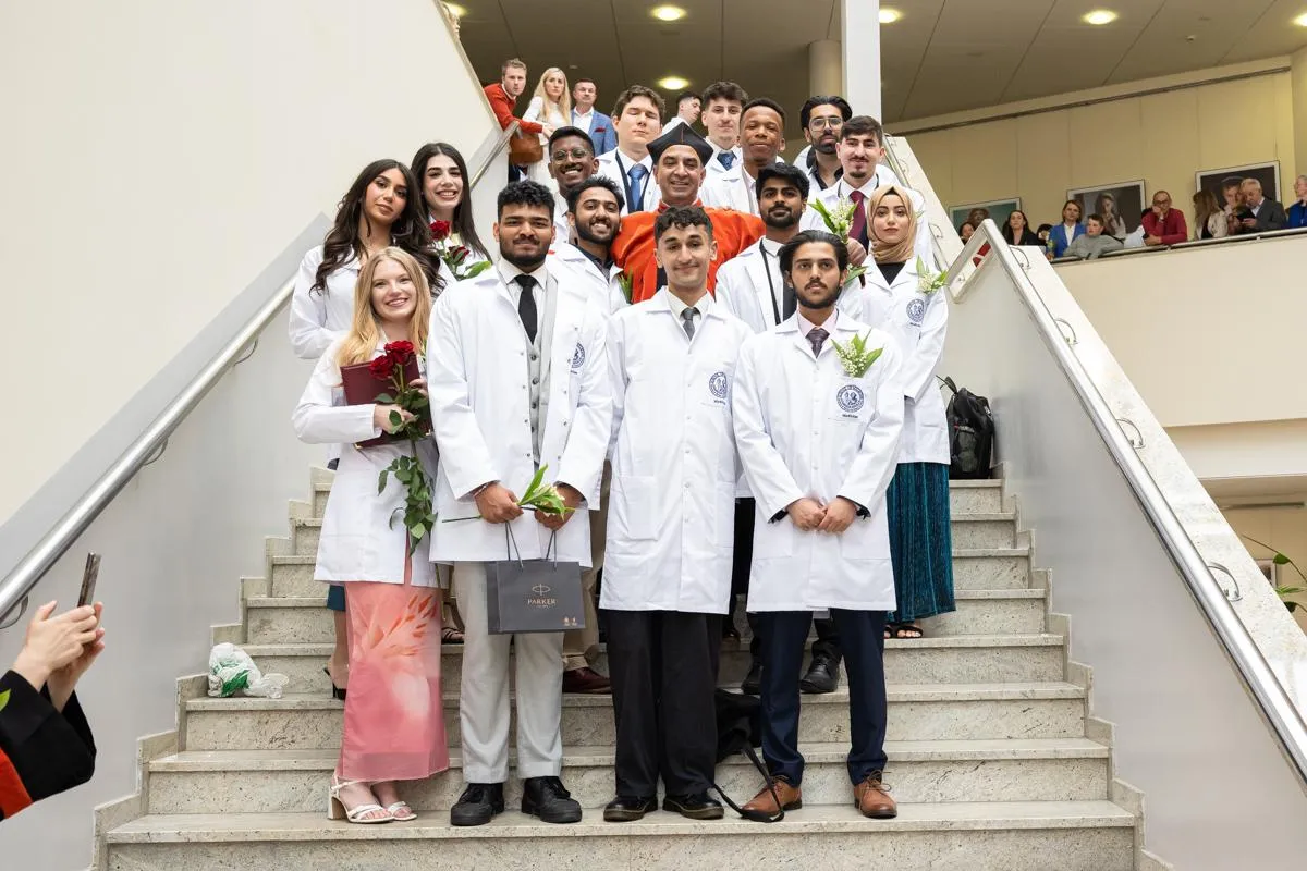 Po studentach polskojęzycznego kierunku lekarskiego, biały fartuch założyli żacy anglojęzycznego kierunku lekarskiego. Tę część ceremonii poprowadził dr n. med. Rakesh Jalali. Prodziekan Wydziału Lekarskiego ds. studentów anglojęzycznych i rozwoju również skierował kilka słów do przyszłych lekarzy – tym razem w języku angielskim. Dużo miejsca poświęcił odpowiedzialności – cesze, która mocno wiąże się z wykonywaniem zawodu medyka.