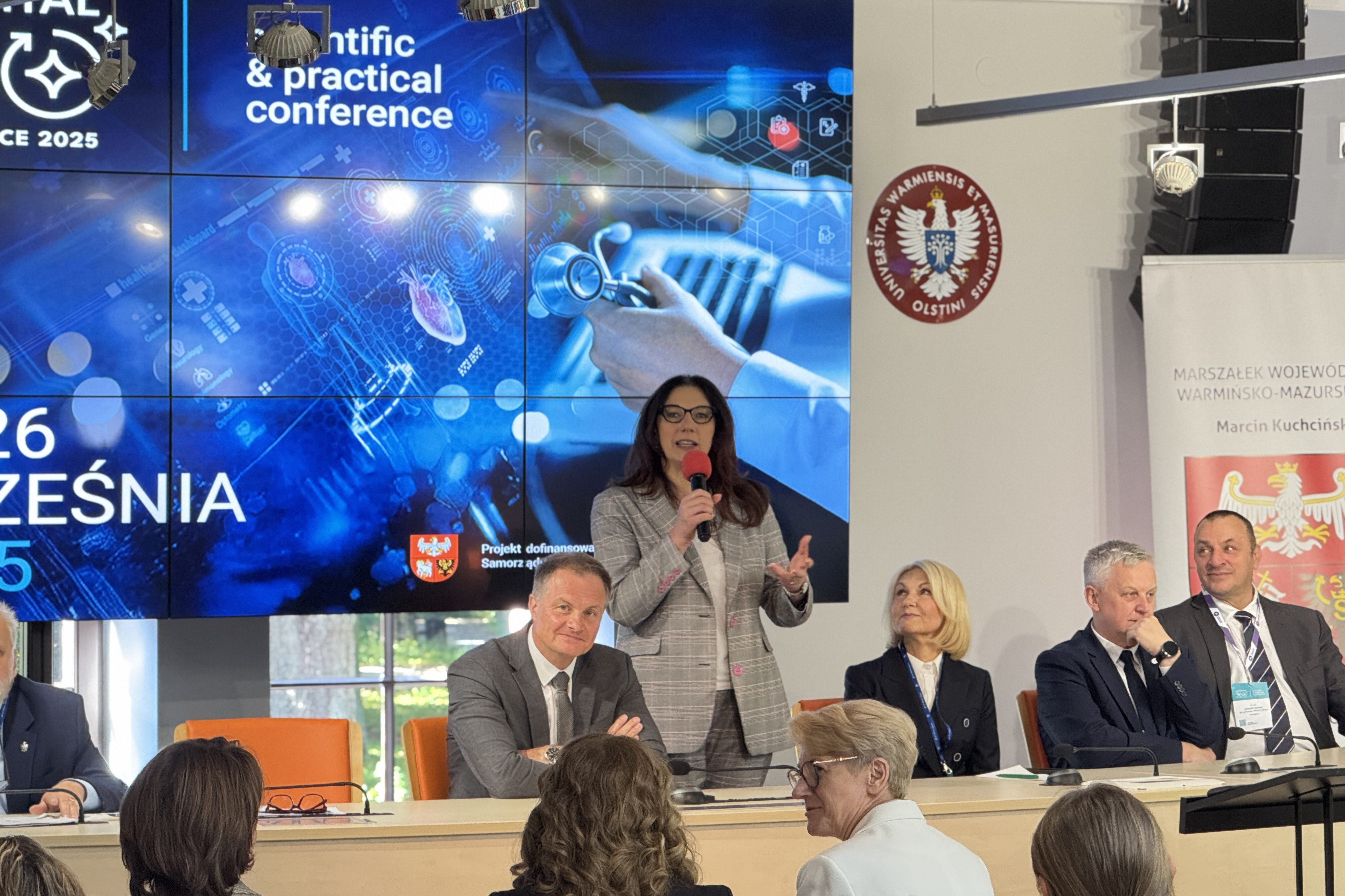 Jednym z głównych tematów konferencyjnych wystąpień była sztuczna inteligencja. Rozmawiano przede wszystkim o tym, w jaki sposób mądrze wykorzystać ją jako narzędzie, które może usprawnić pracę przedstawicieli zawodów medycznych. Mówił o tym m.in. dr hab. Roman Lewandowski, prof. UWM z Wydziału Nauk Ekonomicznych oraz dyrektor Wojewódzkiego Szpitala Rehabilitacyjnego dla Dzieci w Ameryce. W referacie pt. „Poza cyfrowymi danymi: jak zaufanie, innowacyjność i sztuczna inteligencja kształtują przyszłość zarządzania szpitalem” połączył dwa punkty widzenia: teoretyka i praktyka.