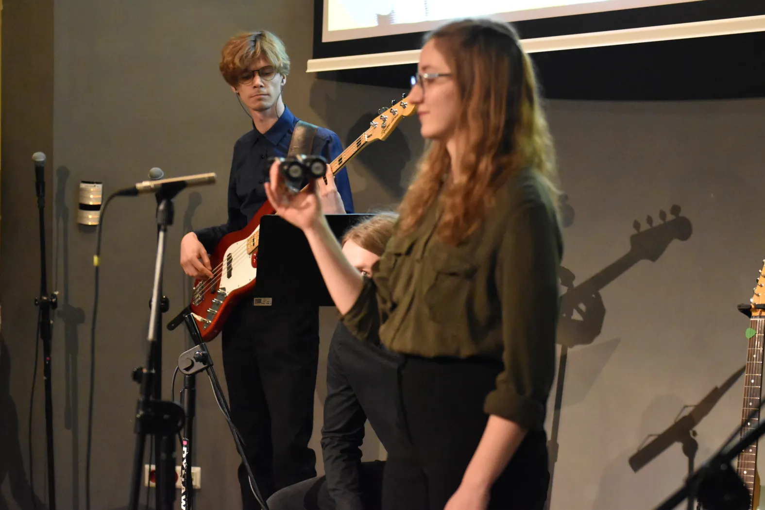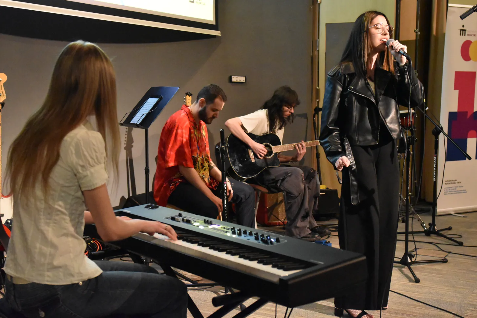 – Mamy koncert wiosenny, natomiast pod tą nazwą kryje się pokazanie tego, co na co dzień robimy na naszym wydziale. Mam wspaniałych i bardzo zdolnych studentów, którzy dali się namówić na to, żeby pokazać trochę jazzu, muzyki pop i innych gatunków muzycznych. Będziemy mieli też animacje wyświetlane przez studentów kierunku sztuki wizualne. Myślę, że będą ciekawe i kontrowersyjne – opowiadała przed koncertem mgr Patrycja Kunert. Dodała, że ponieważ to koncert wiosenny, motywem przewodnim jest wszystko, co w duszy gra. – Budzimy się wiosną do życia i przebudza się w nas muzyka. Usłyszymy m.in. „So easy (to fall in love)” Olivii Dean. Prezentujemy się dzisiaj przed licealistami, którzy za chwilę będą wybierali kierunek studiów.