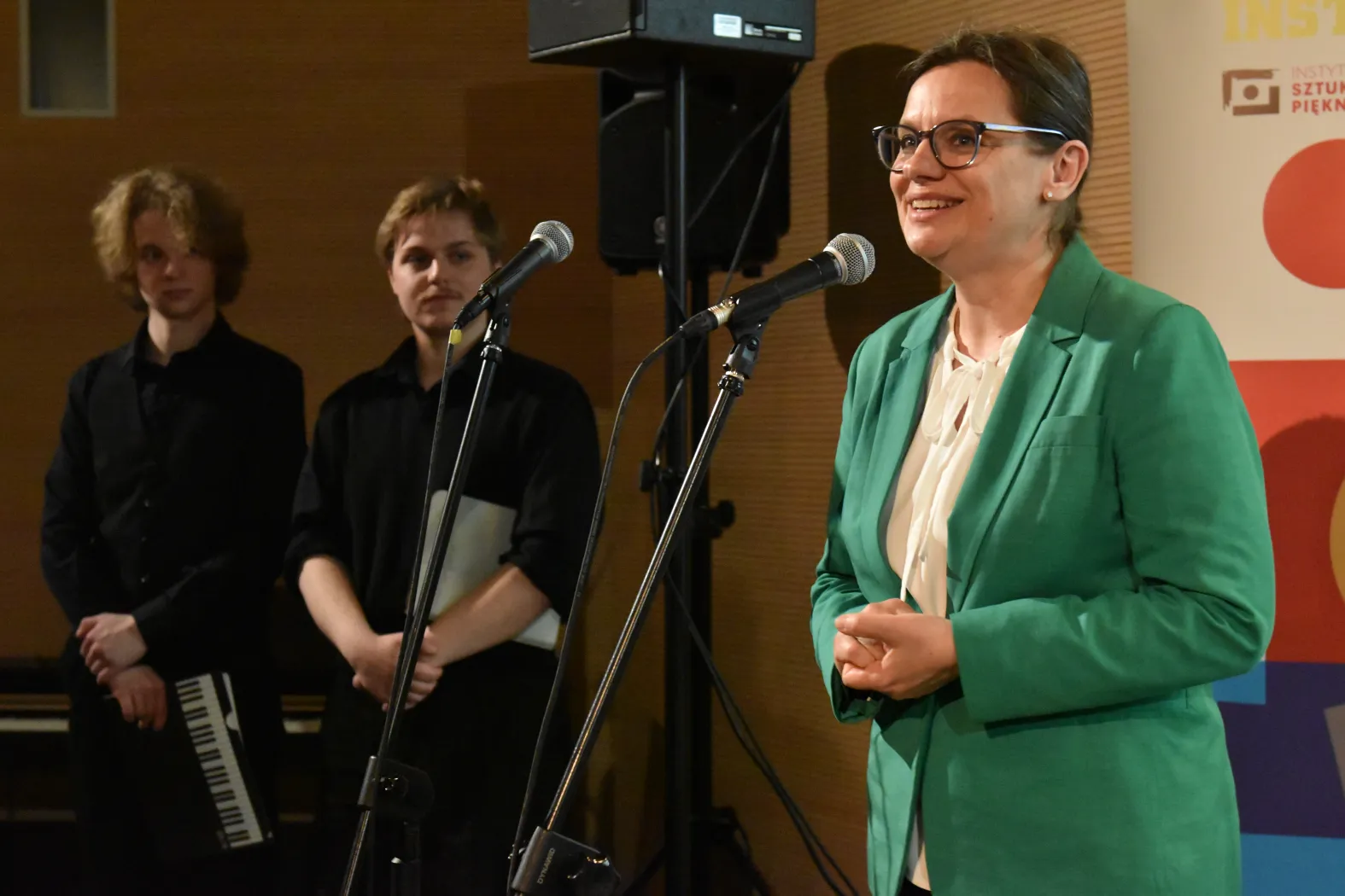 – Mamy sztuki wizualne, które prowadzone są w Instytucie Sztuk Pięknych i których studenci są teraz na pierwszym roku. Naszym najmłodszym dzieckiem, o którym będę dzisiaj mówić, są muzyka i estrada drugiego stopnia. Przygotowujemy się właśnie do rekrutacji. Dużym zainteresowaniem na naszym wydziale cieszą się studia z produkcji muzycznej i realizacji dźwięku. Wszystkie trzy kierunki, które mamy i o których dzisiaj mówimy, są dobrą odpowiedzią na potrzeby społeczne, na to, co dzieje się na rynku pracy, muzycznym, plastycznym – mówiła dr hab. Agnieszka Panasiuk, prof. UWM, podkreślając, że na scenie wystąpią studenci i studentki, przygotowani przez wykładowców.