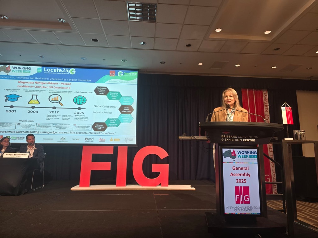 FIG Working Week, czyli doroczne ogólnoświatowe posiedzenie Międzynarodowej Federacji Geodetów, w tym roku odbyło się w dniach 6-10 kwietnia w Brisbane, w Australii. W jego trakcie prof. Małgorzata Renigier-Biłozor zaprezentowała się jako kandydatka na przewodniczącą jednej z dziesięciu komisji FIG, która zajmuje się zagadnieniami ściśle związanymi z jej zainteresowaniami badawczymi – wyceną i zarządzaniem nieruchomościami. Jej kandydatura została pozytywnie przyjęta w głosowaniu, co oznacza, że badaczka z UWM jest pionierką, jeśli chodzi o zasiadanie w zarządzie tej największej na świecie organizacji skupiającej specjalistów związanych ze światem przestrzeni i nieruchomości.