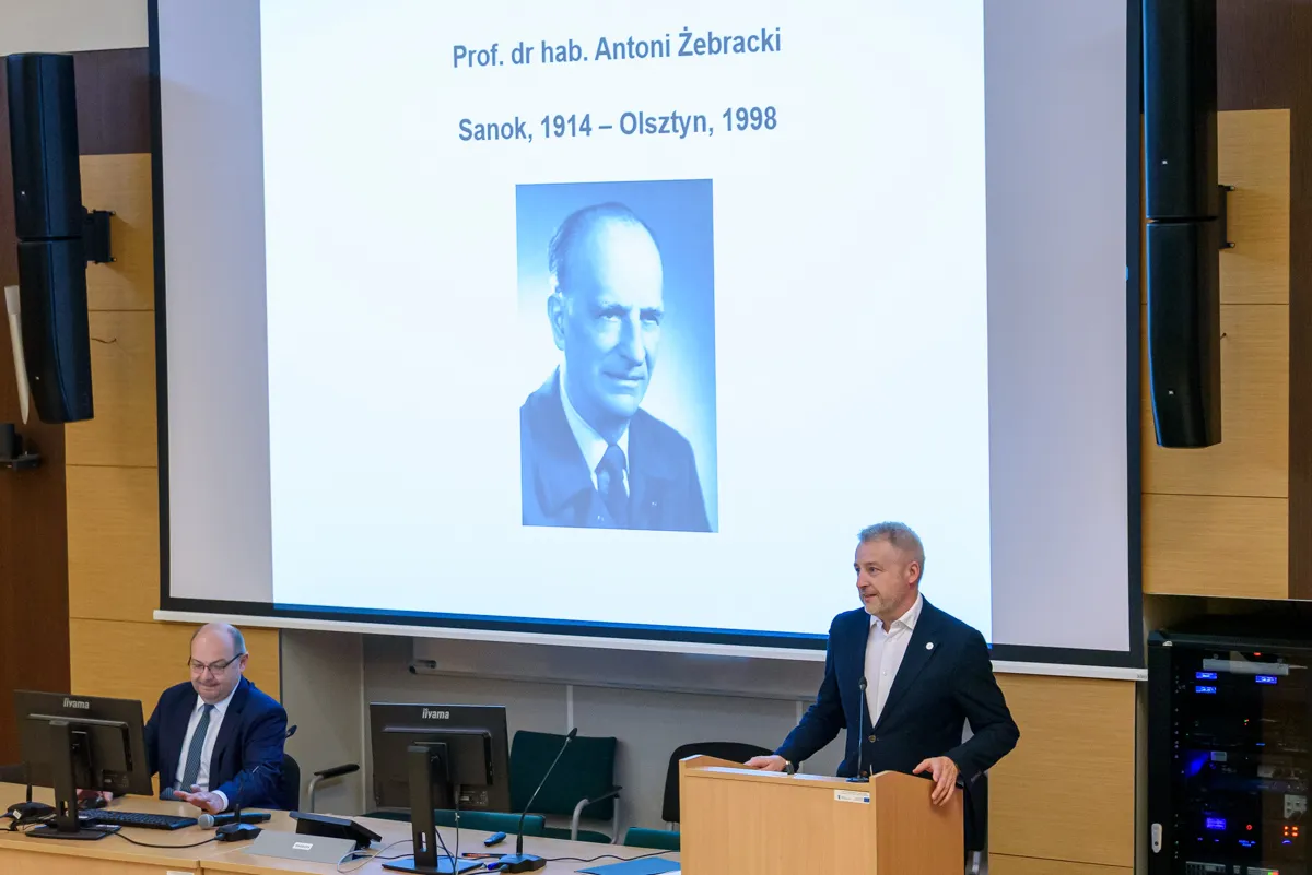 – Myślą przewodnią dzisiejszego wydarzenia było nie tylko uhonorowanie osiągnięć niezwykłego człowieka – prof. Antoniego Żebrackiego – w obszarze działalności społeczno-politycznej, naukowej i dydaktycznej, ale również przybliżenie tych mniej znanych faktów z jego życia. To też doskonała okazja do wspomnień – rozpoczął spotkanie prof. Bogdan Lewczuk, dziekan Wydziału Medycyny Weterynaryjnej UWM i zaznaczył, że bez wątpienia jest to wydarzenie bezprecedensowe w historii wydziału i odbywa się z inicjatywy działaczy społecznych. – Cieszę się, że nasi pracownicy są dostrzegani, a ich działalność spotyka się z uznaniem i szacunkiem. Dziękuję za tę inicjatywę.