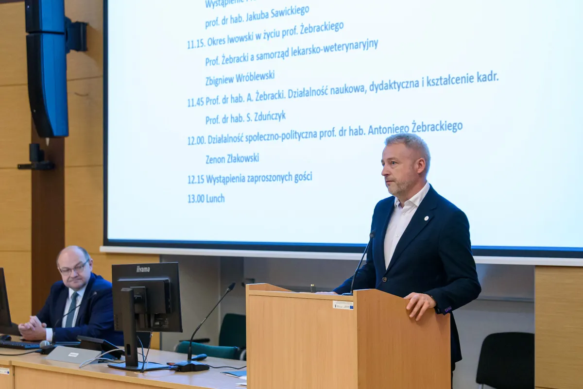 O okresie lwowskim w życiu prof. Antoniego Żebrackiego oraz działalności naukowej i dydaktycznej opowiedział prof. Sławomir Zduńczyk, kierownik Katedry Rozrodu Zwierząt z Kliniką – katedry, którą utworzył i kierował profesor Żebracki.
