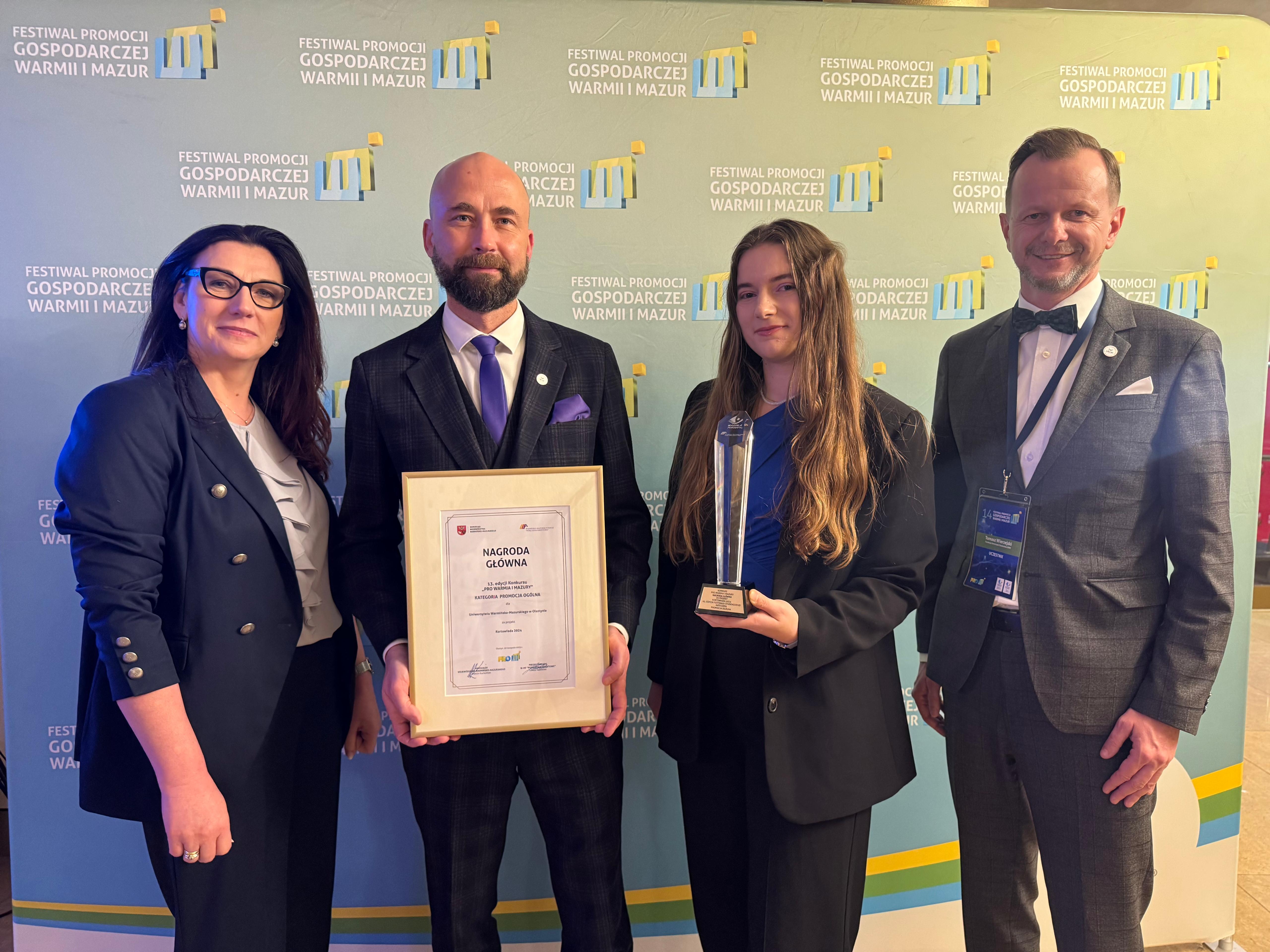 – Otrzymaliśmy nagrodę główną, więc radość jest tym większa. Organizując Kortowiadę, nasz zespół, w którym – co chciałabym podkreślić – działają także wolontariusze, robi wszystko, aby studenci mieli jak najlepsze wspomnienia z Uniwersytetu oraz Kortowa. Dlatego odbieramy tę nagrodę jako potwierdzenie tego, że nasza praca przynosi pożądane owoce – komentuje Iwona Pająk, przewodnicząca RUSS, która wspólnie z prof. Sławomirem Przybylińskim, prorektorem UWM ds. studenckich odebrała statuetkę w imieniu organizatorów Kortowiady 2024. Wręczenie nagród miało miejsce podczas uroczystej gali towarzyszącej 14. Festiwalowi Promocji Gospodarczej Warmii i Mazur (20–21 listopada 2025 roku) w Kętrzynie.