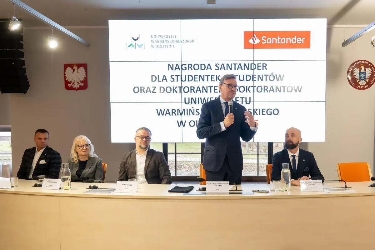 – Bank Santander współpracuje z kilkudziesięcioma uczelniami w Polsce i bardzo się cieszymy, że jesteśmy jedną z nich. To wspaniale, że wspiera on rozwój osobisty studentów i doktorantów, ale także zrównoważony rozwój. Jest to dla nas bardzo ważne, zwłaszcza że jako uczelnia realizujemy Agendę na rzecz zrównoważonego rozwoju 2030, a przed nami jest wprowadzenie strategii w tym zakresie i w tej kwestii również możemy korzystać ze wsparcia instytucjonalnego banku Santander, za co również serdecznie dziękujemy – mówił podczas uroczystości wręczenia nagród prof. Jerzy Przyborowski. Rektor UWM, skierował też kilka miłych słów do laureatów: – Chciałbym pogratulować wszystkim nagrodzonym 55 osobom. Z uwagi na fakt, że wpłynęło ponad 500 zgłoszeń, możecie czuć się wyróżnieni i dumni – podkreślił.
