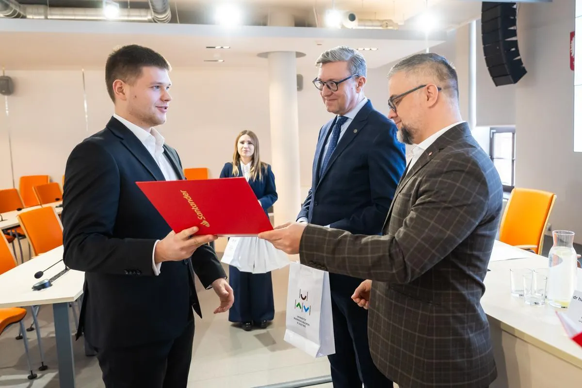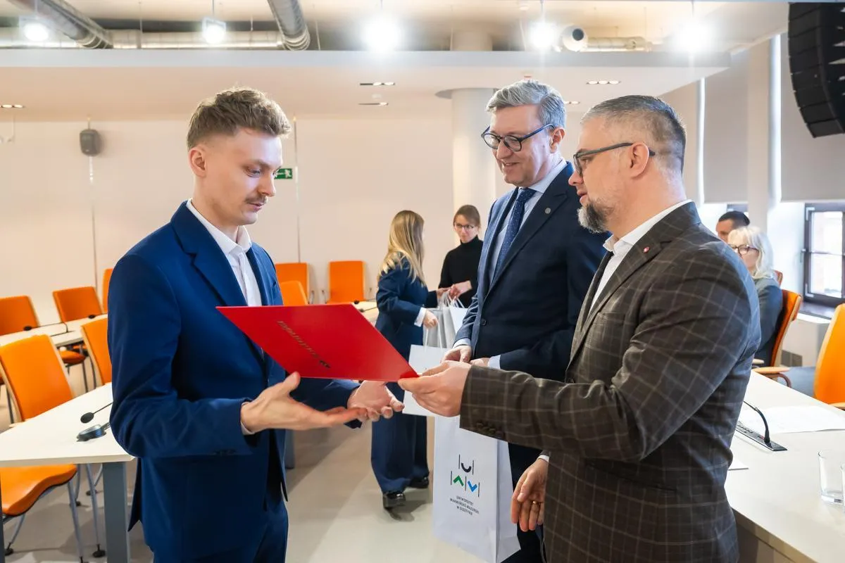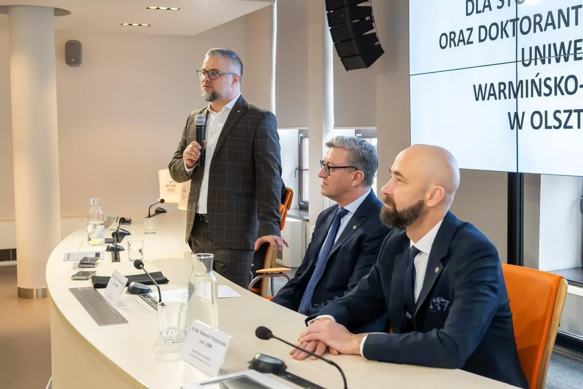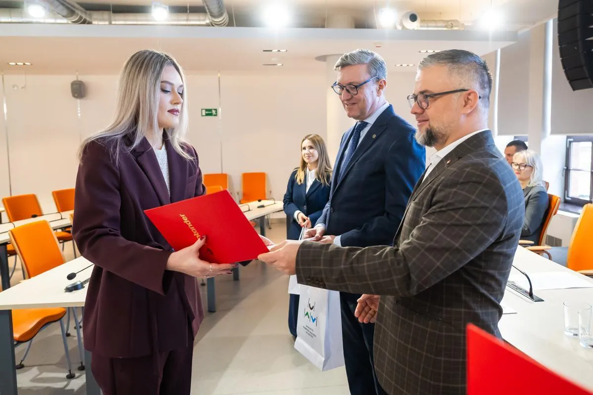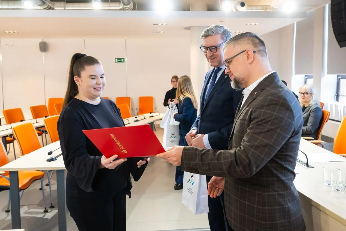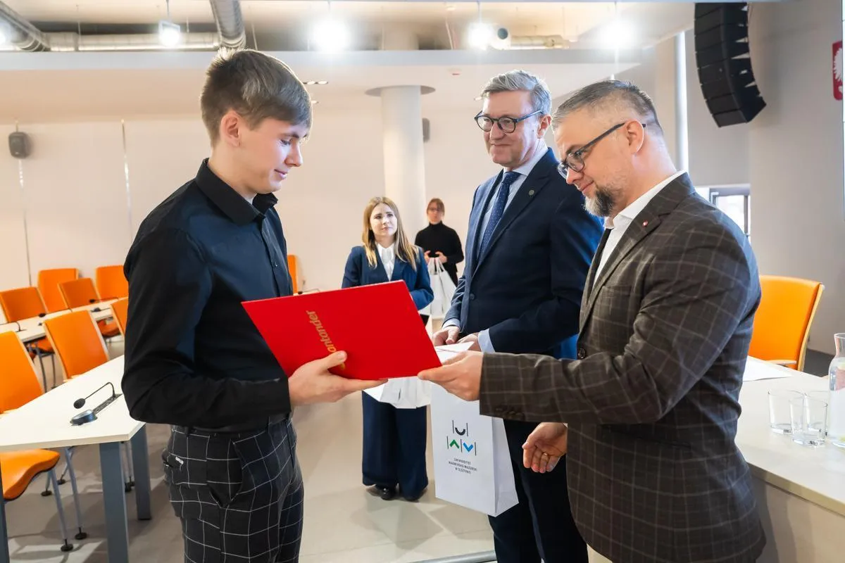 – W każdej edycji otrzymujemy coraz więcej wniosków, co pokazuje, że nasze działania mają sens. Ale mają sens także dlatego, że chęć leży po obu stronach. Działamy na szeroką skalę, jeśli chodzi o wspieranie społeczności akademickich. Mamy kilkadziesiąt projektów i cały czas się uczymy – m.in. dzięki takim relacjom, jakie mamy z Uniwersytetem Warmińsko-Mazurskim i Centrum Współpracy z Otoczeniem Społeczno-Gospodarczym UWM. Gratulacje należą się więc nie tylko nagrodzonym, ale także organizatorom, bo bez ich pracy nie moglibyśmy się dzisiaj spotkać – mówił Rafał Denga. – Co roku spotykamy się w przedświątecznym czasie, który sprzyja tego rodzaju celebracjom. Chciałbym wam podziękować, drodzy laureaci, bo pokazujecie, że nie tylko dobrze się uczycie, ale także wykazujecie się dodatkowym zaangażowaniem – naukowym, społecznym, kulturalnym czy sportowym. Życzę również wszystkim dobrych świąt Bożego Narodzenia – odrobiny wypoczynku, bo z każdym rokiem przychodzi nam się mierzyć z coraz to nowymi wyzwaniami, dlatego chwila wytchnienia z pewnością przyda się każdemu z nas.