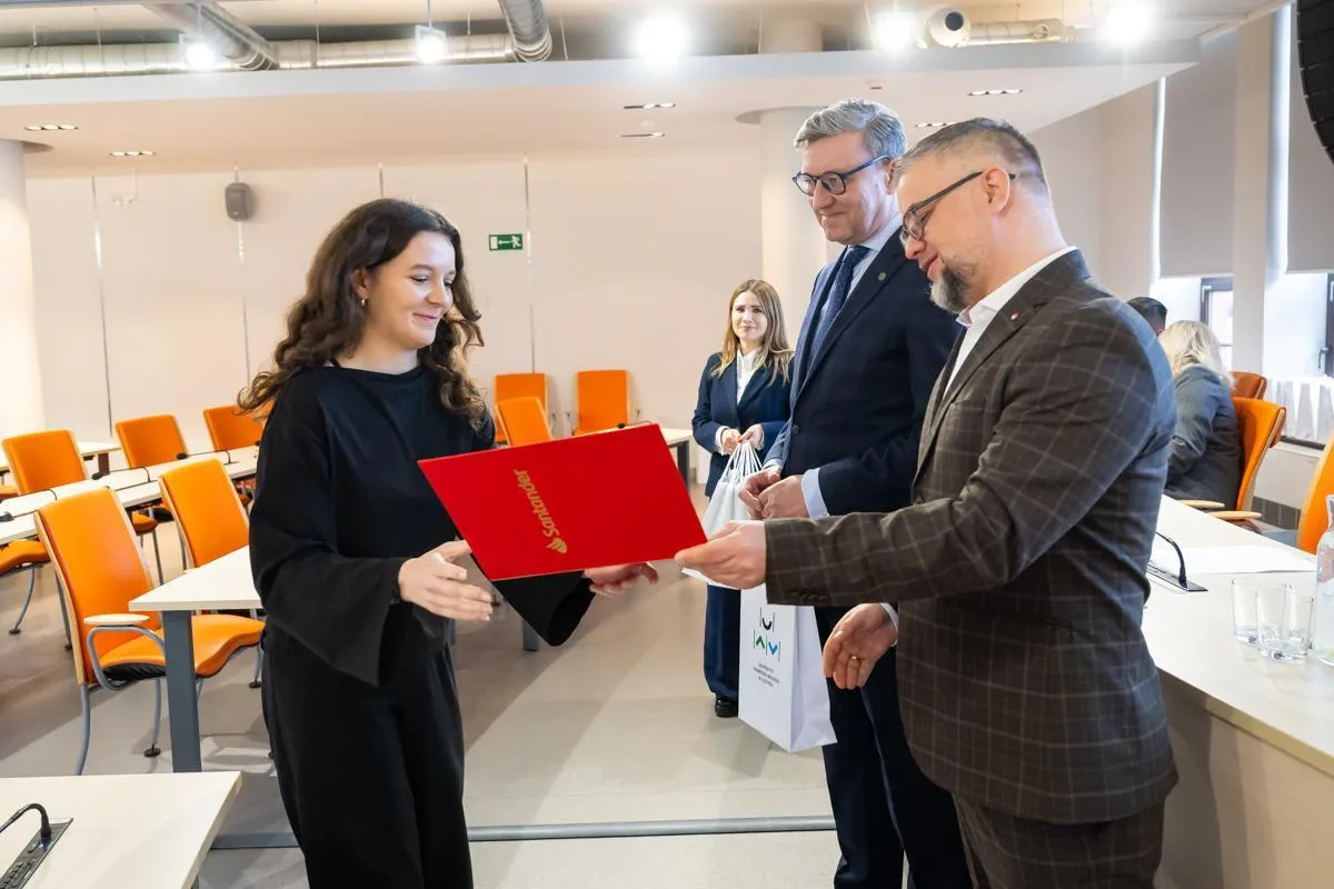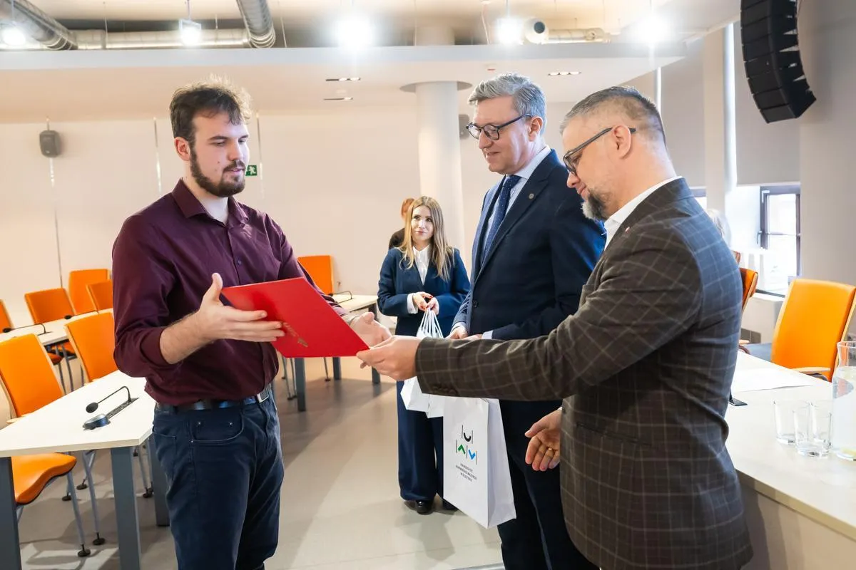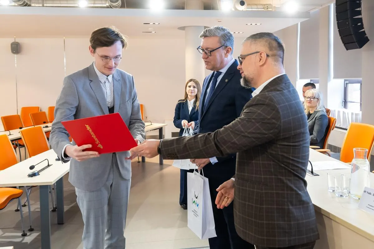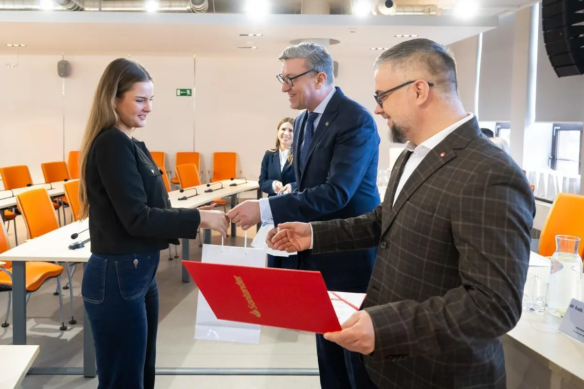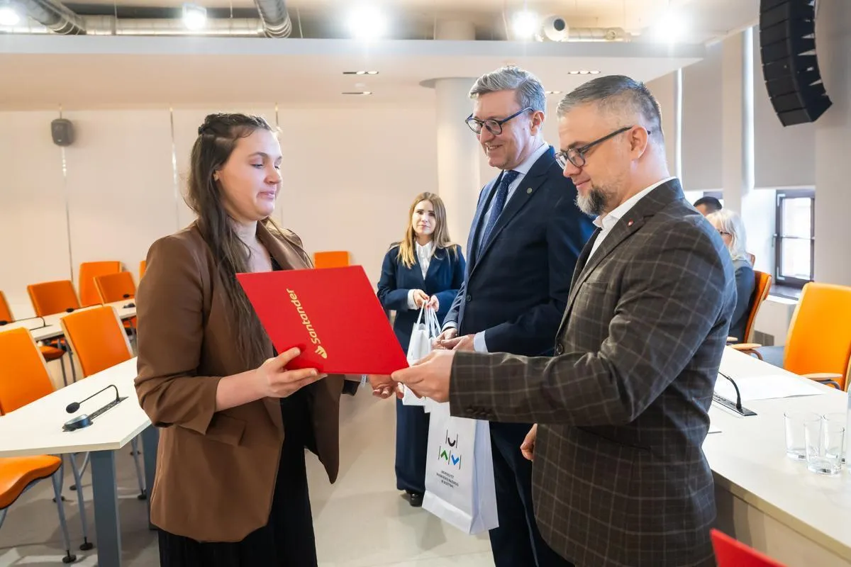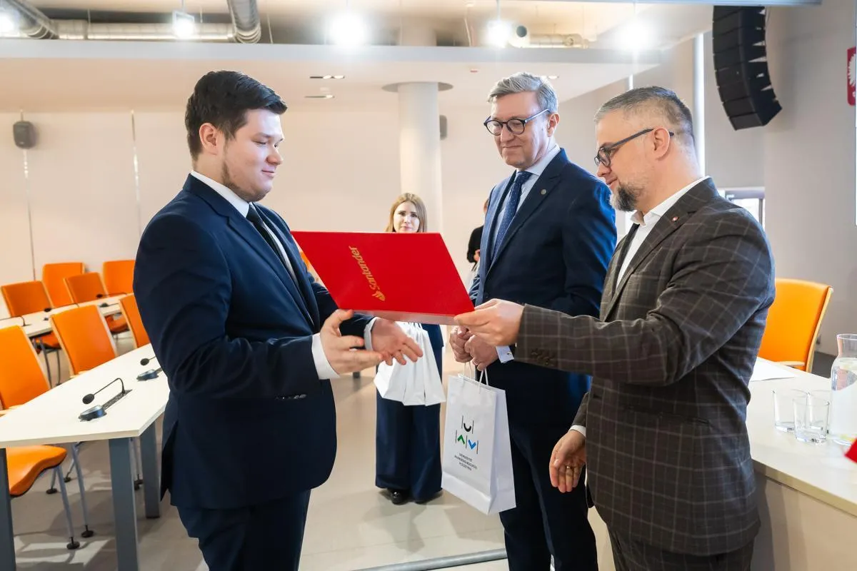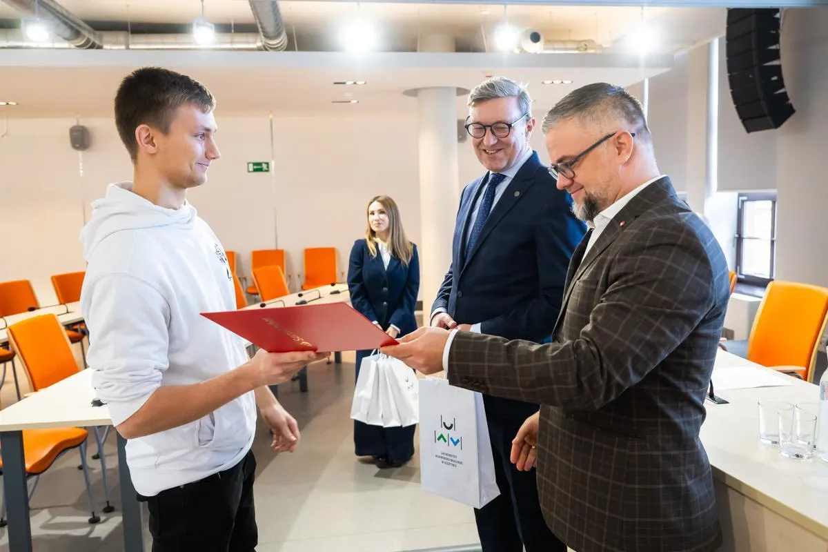 – W każdej edycji otrzymujemy coraz więcej wniosków, co pokazuje, że nasze działania mają sens. Ale mają sens także dlatego, że chęć leży po obu stronach. Działamy na szeroką skalę, jeśli chodzi o wspieranie społeczności akademickich. Mamy kilkadziesiąt projektów i cały czas się uczymy – m.in. dzięki takim relacjom, jakie mamy z Uniwersytetem Warmińsko-Mazurskim i Centrum Współpracy z Otoczeniem Społeczno-Gospodarczym UWM. Gratulacje należą się więc nie tylko nagrodzonym, ale także organizatorom, bo bez ich pracy nie moglibyśmy się dzisiaj spotkać – mówił Rafał Denga. – Co roku spotykamy się w przedświątecznym czasie, który sprzyja tego rodzaju celebracjom. Chciałbym wam podziękować, drodzy laureaci, bo pokazujecie, że nie tylko dobrze się uczycie, ale także wykazujecie się dodatkowym zaangażowaniem – naukowym, społecznym, kulturalnym czy sportowym. Życzę również wszystkim dobrych świąt Bożego Narodzenia – odrobiny wypoczynku, bo z każdym rokiem przychodzi nam się mierzyć z coraz to nowymi wyzwaniami, dlatego chwila wytchnienia z pewnością przyda się każdemu z nas.