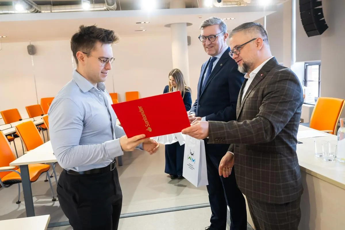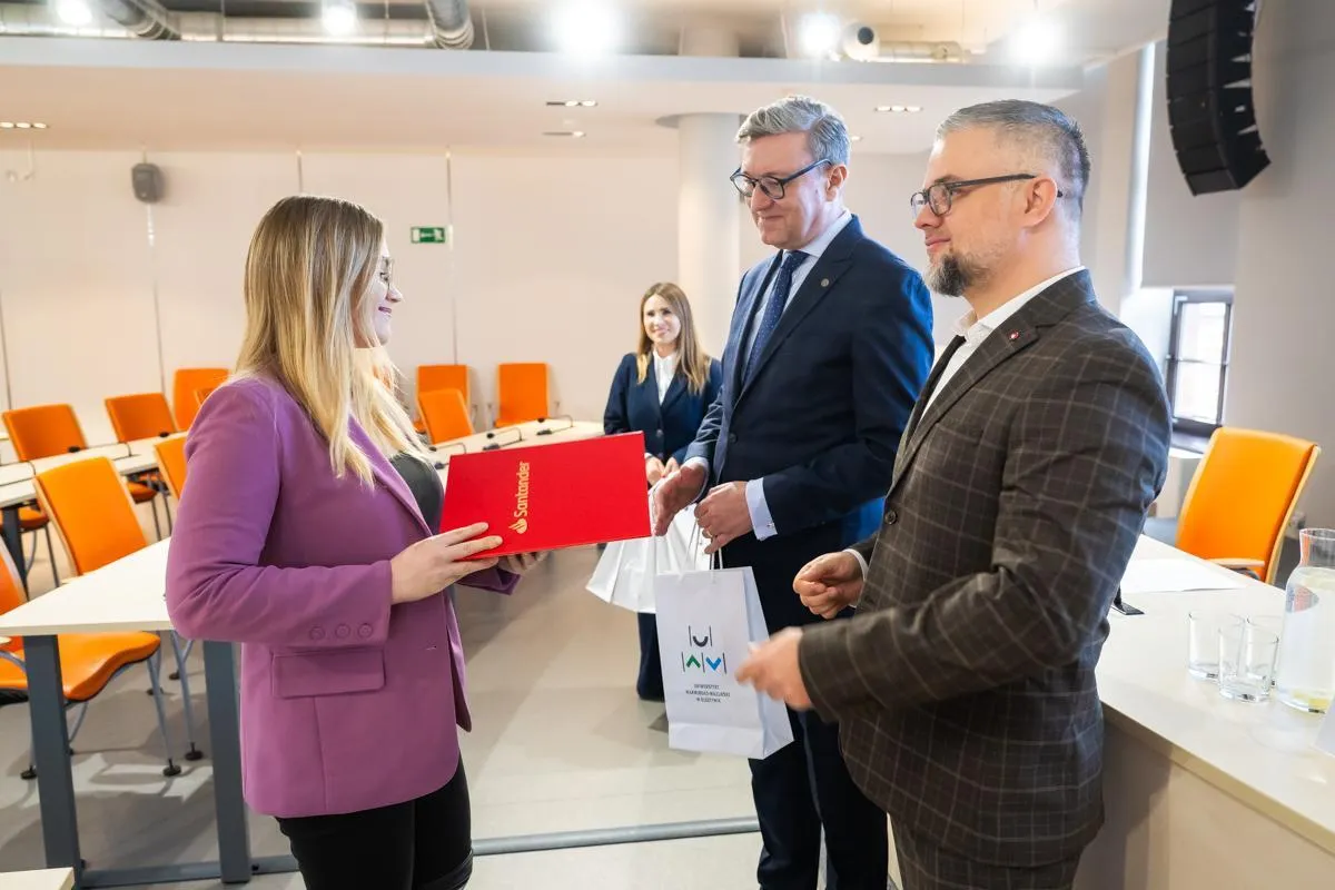 – Współpraca z bankiem Santander jest przykładem partnerstwa aktywnego i dynamicznego. To nie jest tylko porozumienie podpisane w błysku fleszy, ale rzeczywiście przekłada się ono na realne działania. Oprócz nagród współpracujemy przy różnych wydarzeniach – jednym z nich jest Bloody Day, czyli akcja oddawania krwi, która odbyła się w ubiegłym roku. Poza tym pracownicy banku, wśród których są nasi absolwenci, angażują się w projekt mentoringowy. Nasze dobre relacje staramy się przekładać na efektywną współpracę – zaznaczała Marta Wangin.