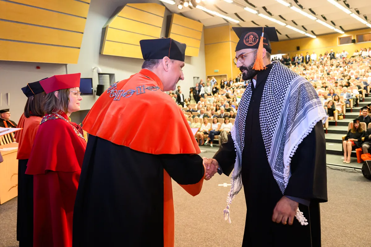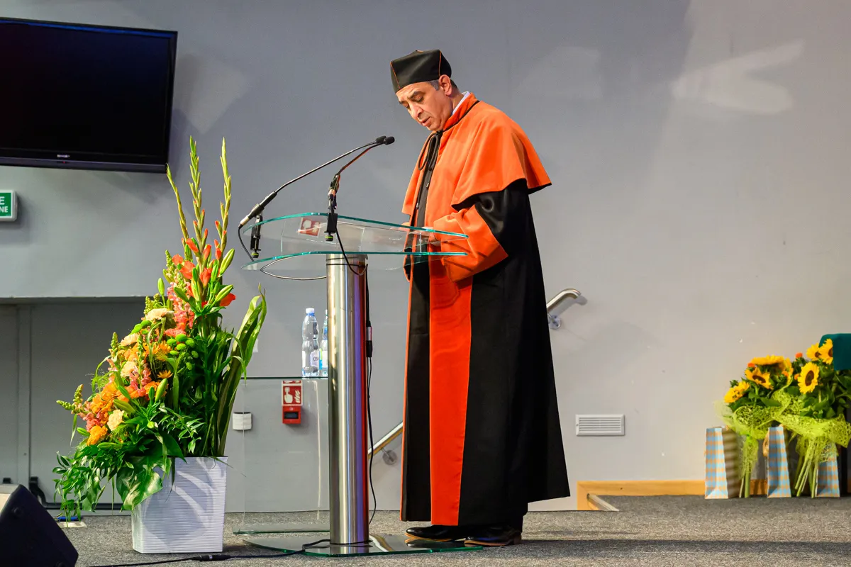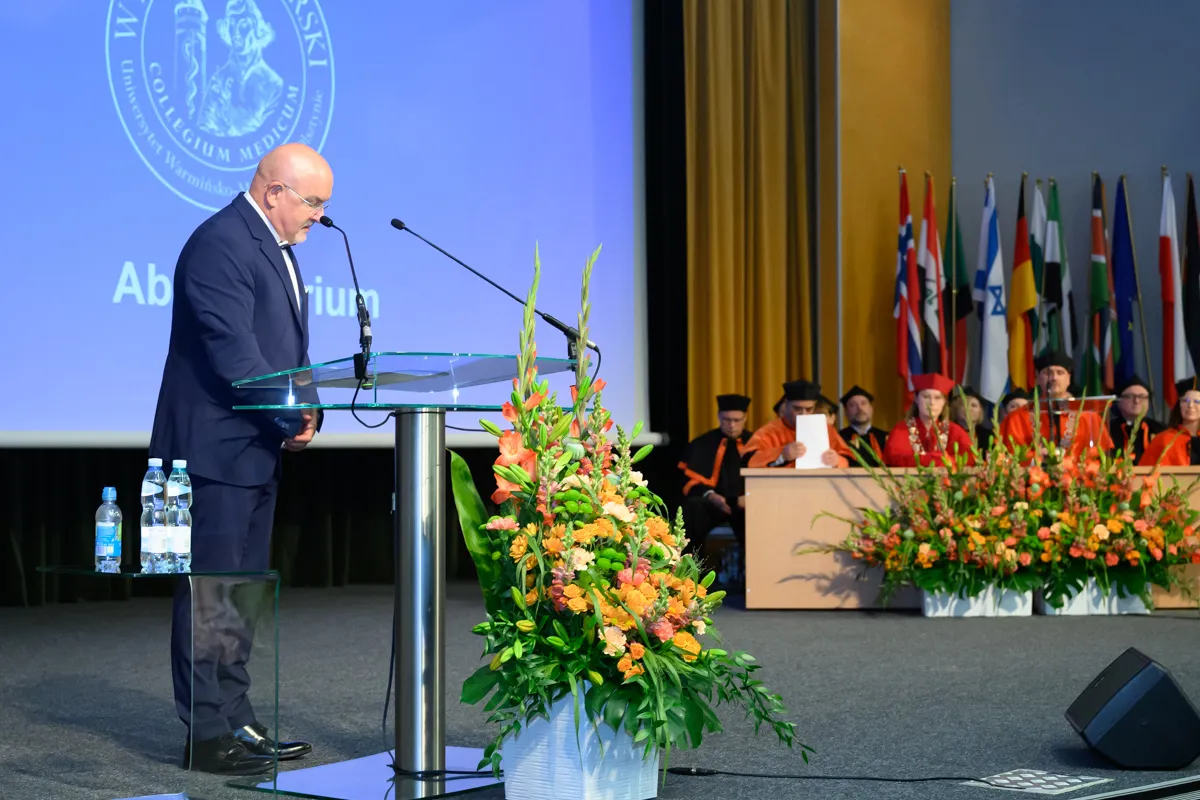 „Drodzy absolwenci, dziś kończy się jeden z ważniejszych etapów w waszym życiu, będący zwieńczeniem lat ciężkiej pracy, wytrwałości, nieustannego dążenia do zdobycia wiedzy i umiejętności niezbędnych w służbie zdrowiu i życiu drugiego człowieka. Przed wami nowe wyzwania, staż, specjalizacja, odpowiedzialność zawodowa, ale również ogromna szansa, aby każdego dnia czynić realną różnicę w życiu innych.