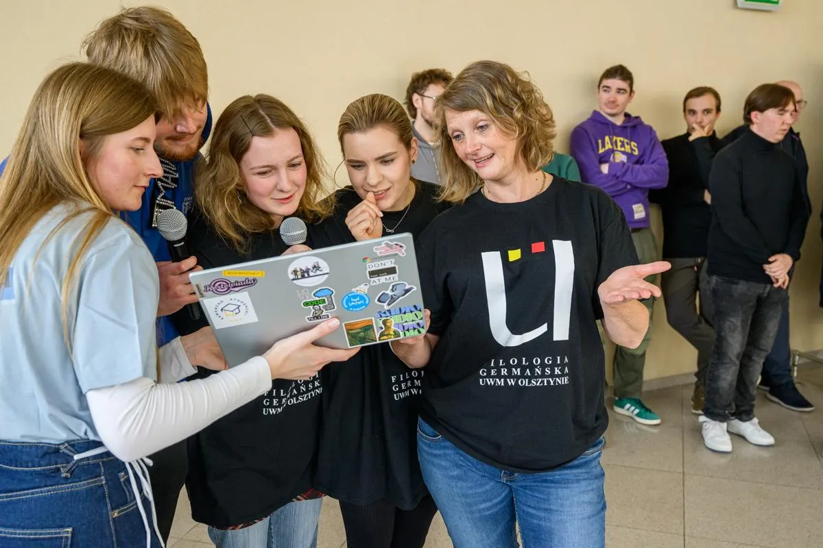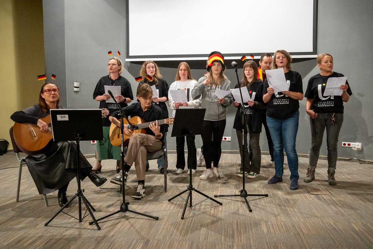 – Z pomocą dr Aliny Kuzborskiej i dr Barbary Sapały przygotowaliśmy utwór Maryli Rodowicz pt. „Ale to już było”. Chcieliśmy pokazać, że nasz kierunek obchodzi 30-lecie, dlatego też w tekście znalazł się wers „lat 30 już za nami”. Cieszymy się, że mogliśmy wystąpić przed społecznością Wydziału Humanistycznego. Same przygotowania też były czasem, w którym mogliśmy pośmiać się, pośpiewać – po prostu zintegrowaliśmy się – opowiadał Adrian Wiszniewski, student drugiego roku filologii germańskiej.