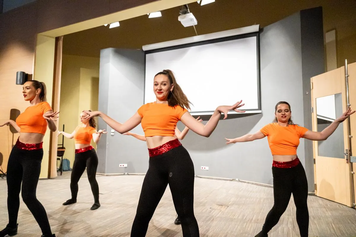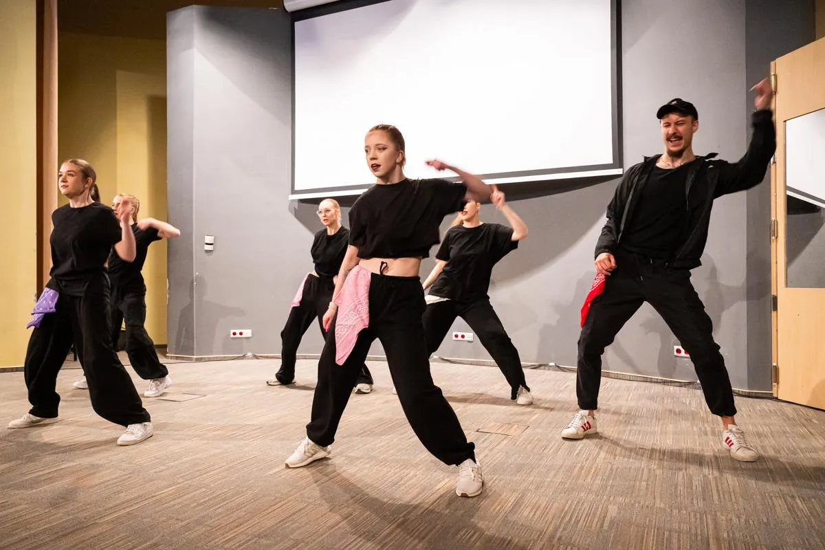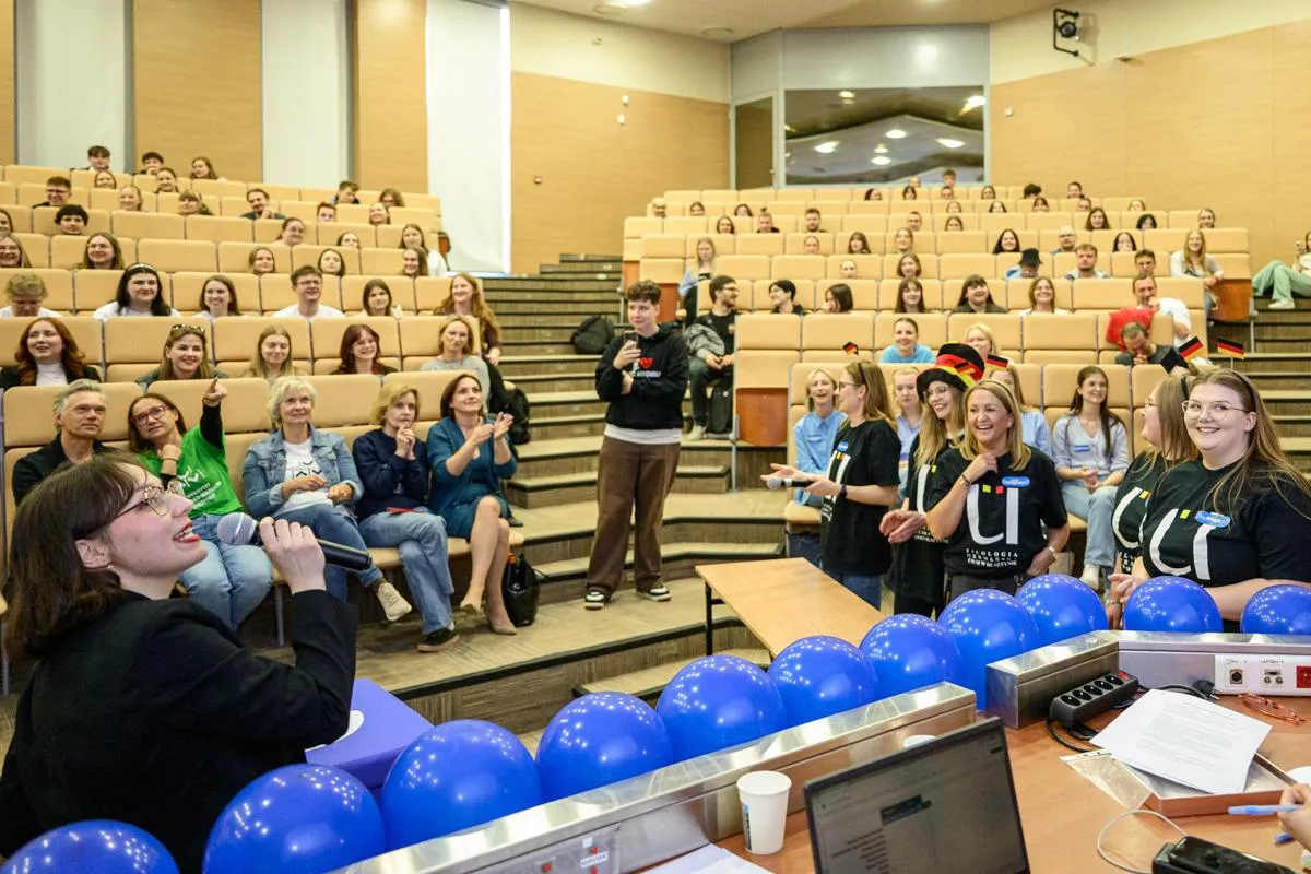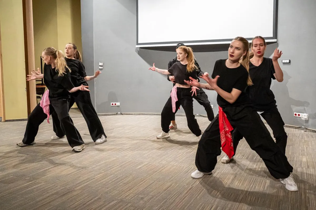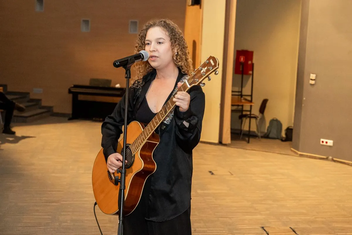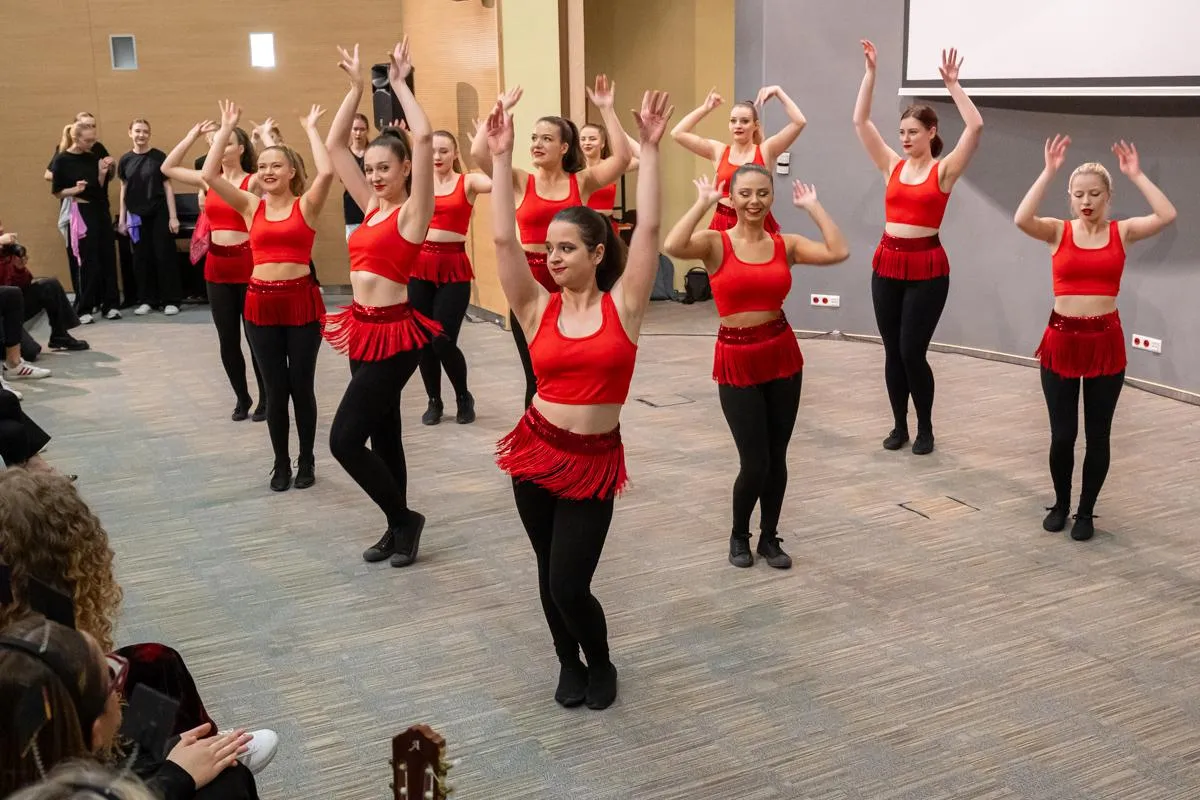 Po debacie w Auli Teatralnej odbyły się występy artystyczne, które rozgrzały wszystkich zawiedzionych kapryśną i chłodną majową pogodą. Gdy na scenie pojawiła się „Endorfina” – sekcja tańca Studium Wychowania Fizycznego i Sportu UWM – i zatańczyła do gorącej hiszpańskiej piosenki „La Cintura” Alvaro Solera, padający za oknem deszcz przestał mieć znaczenie. Za gitarę chwyciła nawet dr hab. Aneta Jachimowicz, prof. UWM, prodziekan ds. kształcenia i germanistka. I stało się to nie bez powodu – germaniści z UWM obchodzą w tym roku jubileusz.