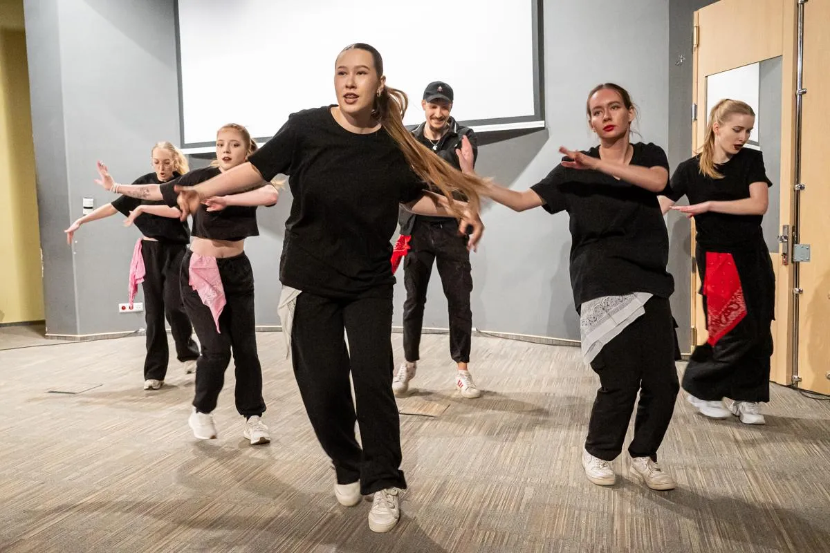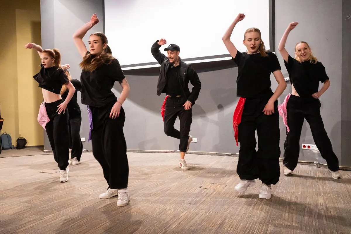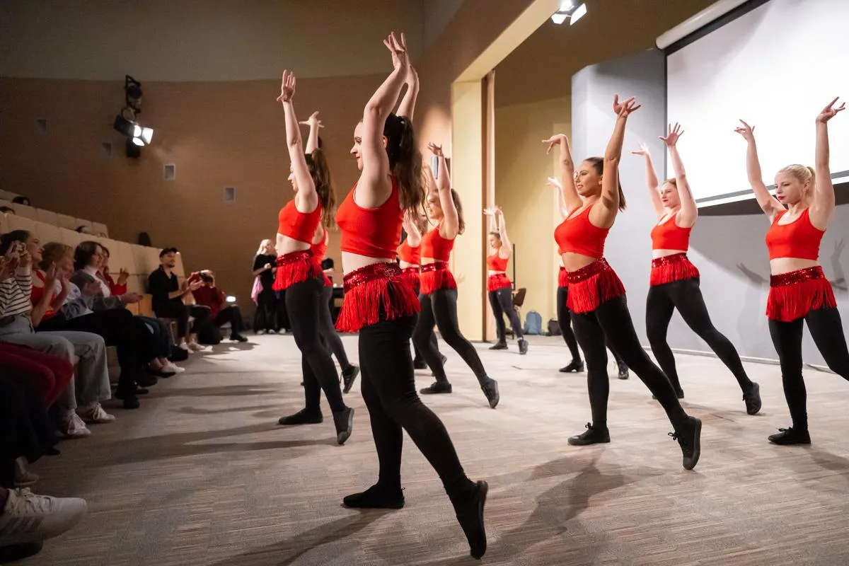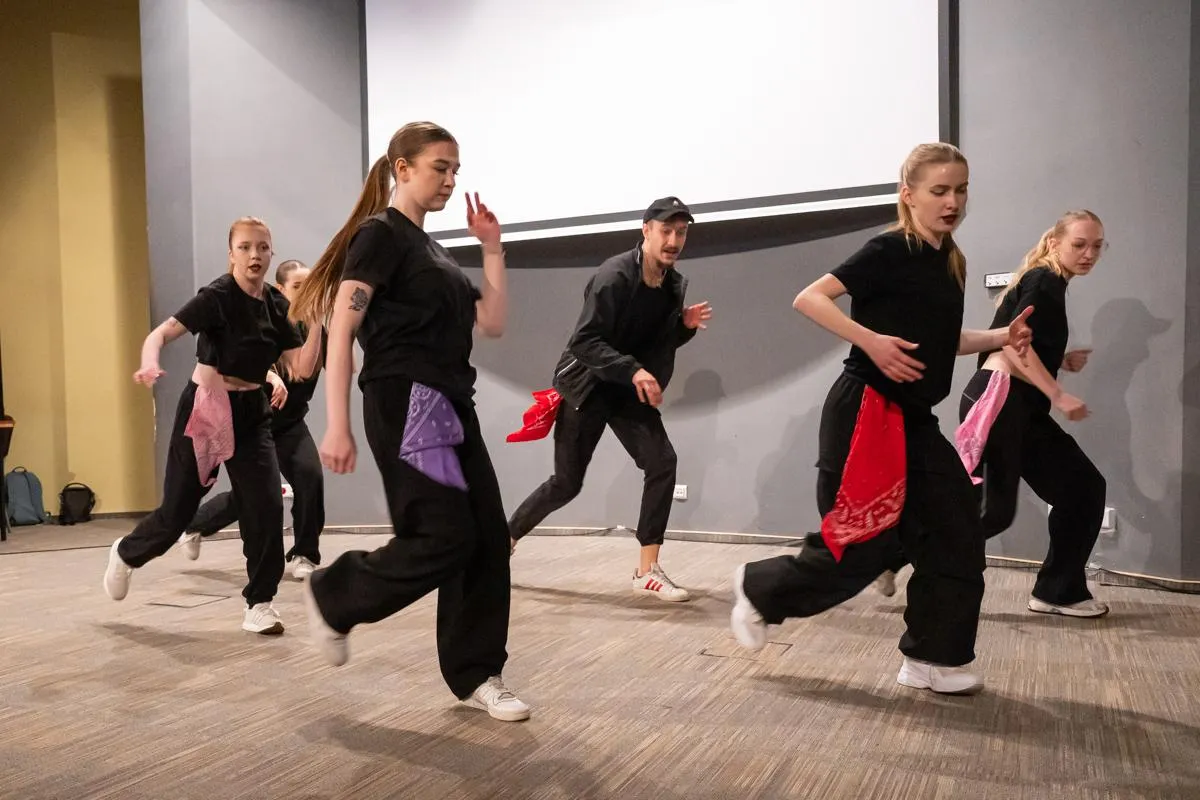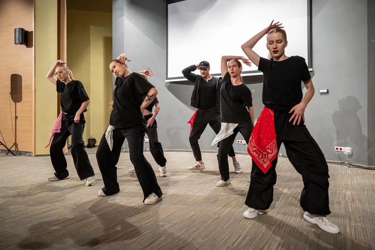 Po debacie w Auli Teatralnej odbyły się występy artystyczne, które rozgrzały wszystkich zawiedzionych kapryśną i chłodną majową pogodą. Gdy na scenie pojawiła się „Endorfina” – sekcja tańca Studium Wychowania Fizycznego i Sportu UWM – i zatańczyła do gorącej hiszpańskiej piosenki „La Cintura” Alvaro Solera, padający za oknem deszcz przestał mieć znaczenie. Za gitarę chwyciła nawet dr hab. Aneta Jachimowicz, prof. UWM, prodziekan ds. kształcenia i germanistka. I stało się to nie bez powodu – germaniści z UWM obchodzą w tym roku jubileusz.