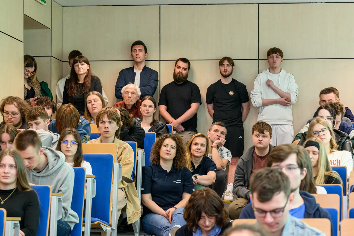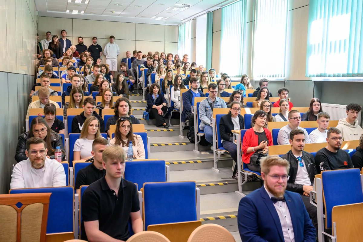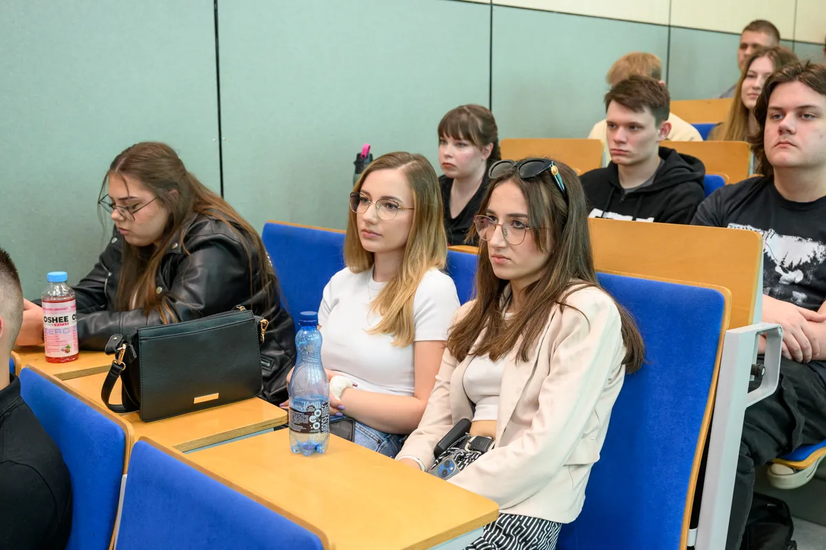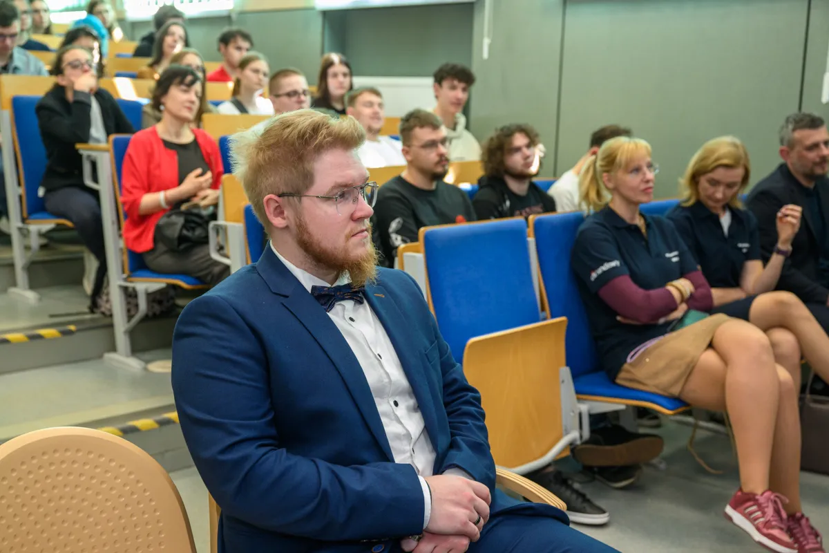 – Bardzo mnie cieszy to, że widzę tak liczną publiczność w auli Wydziału Nauk Ekonomicznych. Spotkaliśmy się, aby porozmawiać o przyszłości. Żyjemy w bardzo dynamicznych czasach, w bardzo turbulentnym otoczeniu i musimy sobie zadawać pytania, co dalej z rynkiem pracy, przedsiębiorczością, karierą zawodową, jak te ścieżki rysować na różnych etapach. Jestem przekonany, że dzisiejsze spotkanie sprowokuje was do zastanowienia się i być może zaplanowania swojej przyszłości i kariery zawodowej w trochę inny sposób – mówił do osób uczestniczących w wydarzeniu dr Tomasz Wierzejski, prodziekan ds. kształcenia WNE.